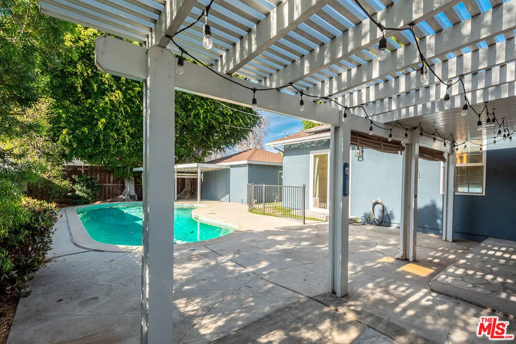 This charming pool home is located in a COVETED Sherman Oaks neighborhood known as Valleyheart Glen – A community known for its welcoming small-town feel, where you’ll still find kids hosting lemonade stands on the corners. Situated on a quiet, tree-lined side street, this 3-bedroom, 3-bath residence blends classic mid-century character with modern upgrades for an ideal Southern California lifestyle. The inviting interior features a living room with hardwood floors, original front windows, and a classic brick fireplace; which is complemented by a formal dining room perfect for entertaining. A welcoming front porch sets the tone for this warm and timeless home. The eat-in kitchen is equipped with stainless steel appliances and a walk-in pantry, ideal for both everyday living and hosting guests. The generous primary suite addition boasts high ceilings, a walk-in closet, and sliding doors that open directly to a private backyard with swimming pool. A detached two-car garage with alley access, offers possible ADU potential. Notable upgrades include a newer HVAC system, upgraded electrical panel, some newer double-pane windows, tankless water heater, and leased solar panels; delivering comfort, efficiency, and significant annual energy savings. Situated within the Dixie Canyon Elementary School and Louis Armstrong middle school districts, and just minutes from Ventura Boulevard, shopping, dining, and local amenities, this home offers the perfect balance of privacy, convenience, and classic Sherman Oaks charm.