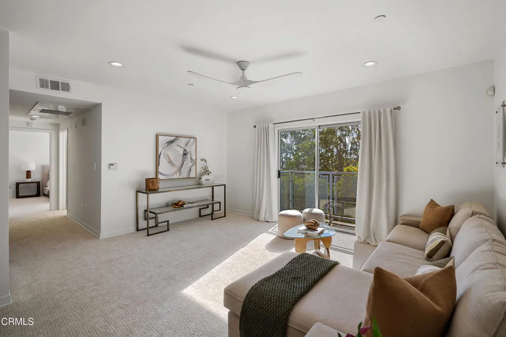 Contemporary Old Town Pasadena Condominium. Pasadena’s Coveted location, urban living truly in the center of Old Town Pasadena.Top floor corner unit with Southeast exposure. Watch the Rose Parade from the community 5th floor entertainment deck. Panoramic views of the San Gabriel Mountains and city views are some of the features of this property. No need for a car, there are a number of outstanding restaurants and shops to choose from right outside of your door. A light and bright living room and dining area with recessed lighting, open to the kitchen and a balcony overlooking Green Street.Spacious primary bedroom plus a second bedroom, updated two full baths. New bathroom fixtures and new shower doors in both bathrooms. Kitchen with Caesarstone countertops, newer stove and Bosch dishwasher. New carpet and fresh paint throughout, Newer AC/Heat, washer/dryer, and microwave. The home includes a gated secure 2 car parking spaces. There is a secure street level lobby with intercom entry. Common outdoor spaces and access to the community gym are part of this property.