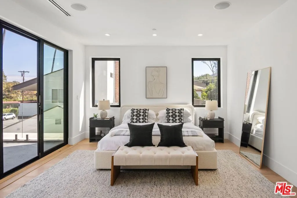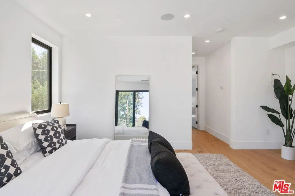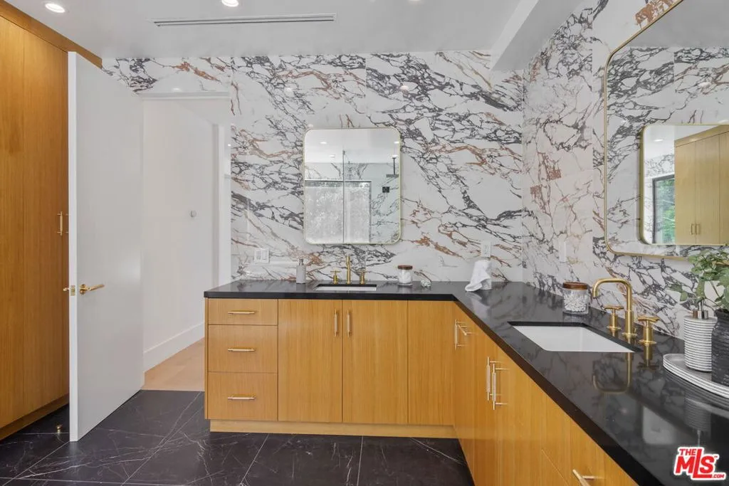 Stunning Newly finished Construction 4 bed/4.5 bath 2-Story Custom Contemporary with pool and large rooftop patio overlooking golf course and Getty Center views! Totally enclosed front yard with auto driveway gate, this home is designed with all the latest designer finishes and filled with incredible natural lighting. Double-sized front door opens to living room with large floor-to-ceiling windows overlooking front yard greenery. Family room with stacked multi-panel door system opening to spacious backyard patio, newly installed pool and yard with built-in fire pit and seating, ideal for entertaining with the perfect indoor/outdoor flow. All-new Modern kitchen with tiled walls, floating shelves, high-end stainless steel appliances including Thermador six burner range with griddle and pot filler, island with breakfast bar and quartz countertops. 1 bedroom with ensuite bath downstairs and 3 additional bedrooms upstairs including beautiful front-facing primary suite with stacked panel glass door to spacious balcony with spectacular golf course views. Spa-like primary bathroom with custom tile and quartz finishes including separate spa bathtub and shower and double sinks. Stairway continues to over-sized rooftop deck with spectacular panoramic city, treetop, golf course and mountain views. Prime location just a few blocks to Brentwood’s San Vicente restaurants and retail, Santa Monica’s Montana Avenue retail and restaurants and beach. Available immediately!