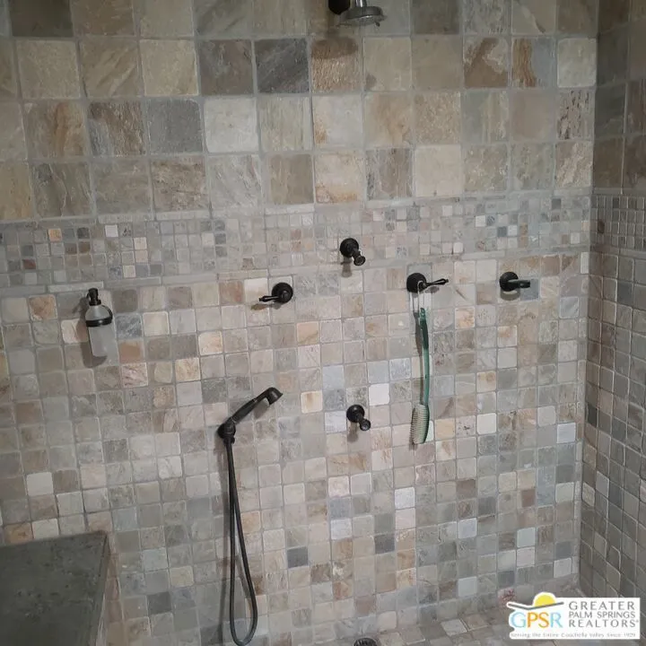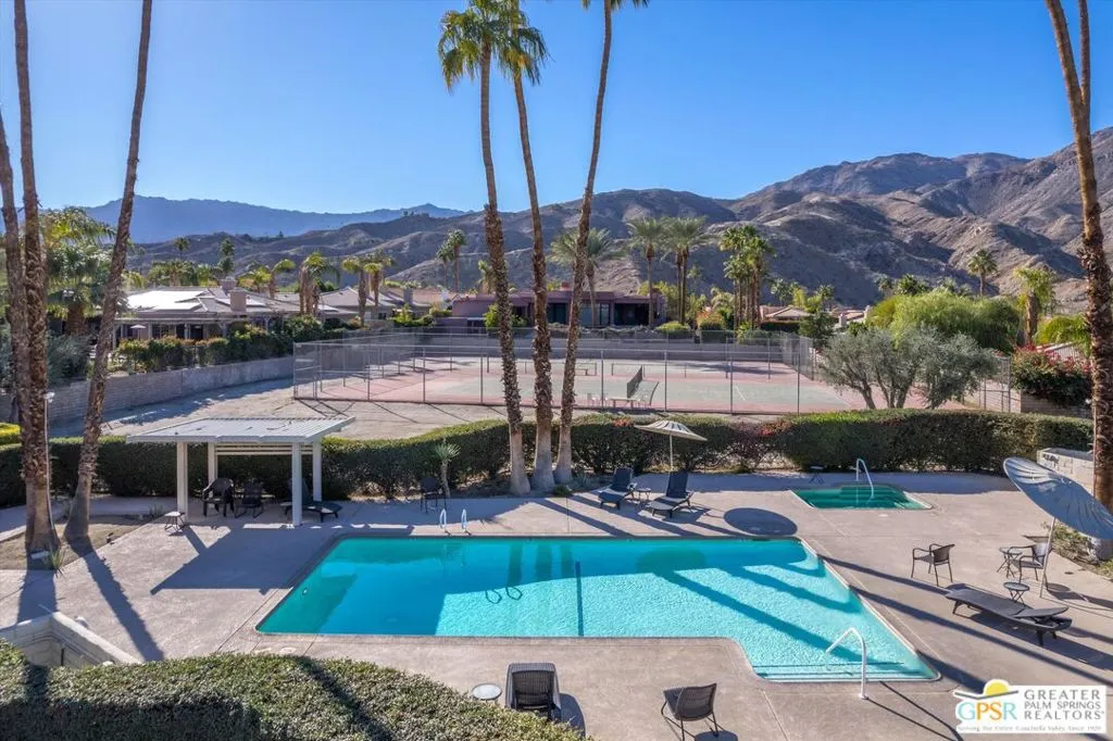 Great Location subdivision off Hwy 74 near El Paso shopping. 2bed,2.5bath 1300+ sq ft condo, private patio off LR/DR area plus off Master Suite. The only condo in Kings Point that has the half bath. designed by renowned modernist architect Hugh Kaptur. This condo features a large living room with tiled fireplace, soaring ceilings and clerestory windows. Flooring is all stone tiled.The spacious primary suite features a large double shower as well as a large cedar lined walk-in closet. Plus a sitting area that leads out to patio (the living room also allows access. Guest bedroom is en-suite with double vanity sink, shower over tub feature. Condo comes with 2 car garage with inside access to condo. In garage is newer washer/dryer units plus extra refrigerator. Kitchen includes smaller built in fridge, gas cooktop, electric oven. Condo is being offered turnkey furnished. The community features a sparkling pool at the end of each cul-de-sac as well as tennis courts. Located just minutes away from El Paseo, shopping, dining and hiking trails. Welcome home to your new historically designated condo.