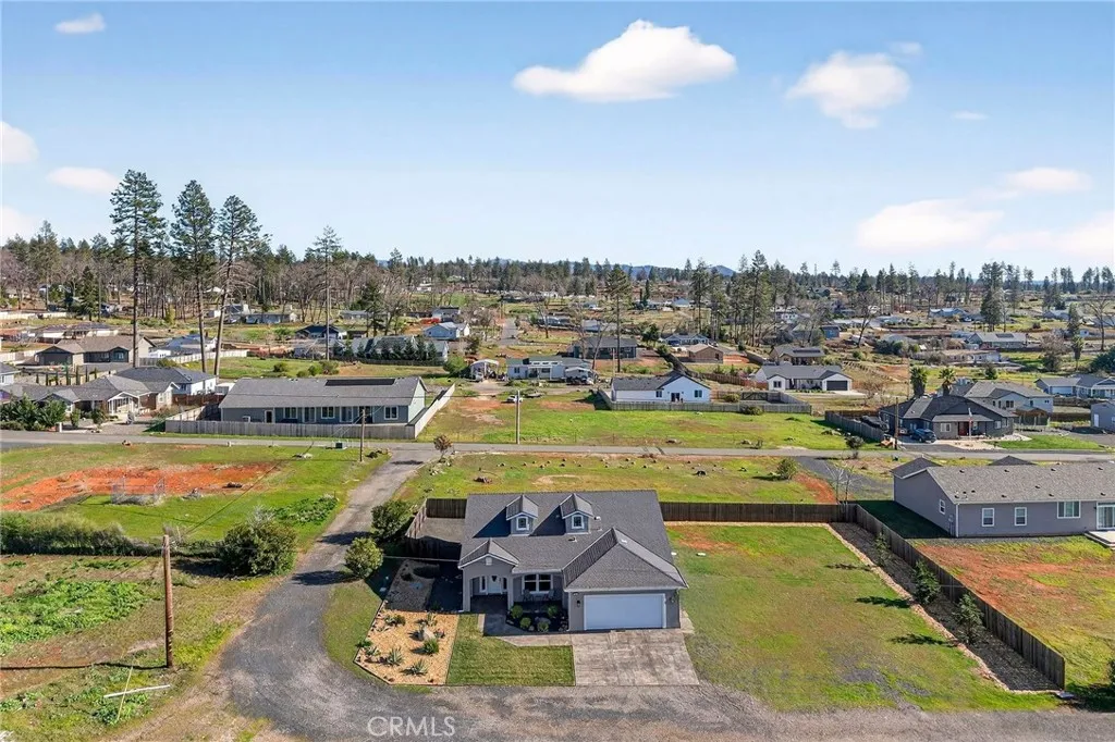 BEAUTIFUL 2022 CUSTOM-BUILT HOME NEAR BILLE PARK!! Welcome to this stunning, custom home offering 3 bedrooms plus a den, 2 bathrooms, and 1,726 sq. ft. of thoughtfully designed living space. From the moment you arrive, you’ll be impressed by the charming landscaping and textured, painted concrete walkway leading to the front entrance. Step inside and instantly feel at home with soaring 10-foot ceilings and an inviting, open layout. This home features both living and family rooms, plus a versatile den—perfect for a home office, flex space, or potential 4th bedroom. The kitchen is a showstopper, showcasing beautiful marble countertops throughout, a large center island, stainless steel appliances, breakfast bar, and a cozy dinette area—ideal for everyday living and entertaining alike. Retreat to the private primary suite featuring 10-foot ceilings, a spacious walk-in closet, and a well-appointed ensuite bath carrying on the marble counters throughout. Enjoy outdoor living with a concrete back patio that opens to a fully fenced backyard, complete with a cross-fenced and gated area—perfect for pets, entertaining, or creating separate outdoor spaces. There’s still plenty of room to add your own personal touches and design the backyard oasis of your dreams. Additional highlights include a two-car garage with finished floors, ample RV and boat parking along the side of the home, and the convenience of a fire hydrant located just a few feet from the property. With new construction continuing throughout the neighborhood, this is your chance to be back on the Ridge in a spacious, beautifully built home. Enjoy a nice end-of-land location that is just minutes to downtown Paradise and only 12 miles to Chico. Best of all, the home is within walking distance to the beautiful Bille Park, offering two playgrounds, BBQ areas, and scenic walking trails with stunning canyon views. Don’t miss this incredible opportunity—schedule your showing today!