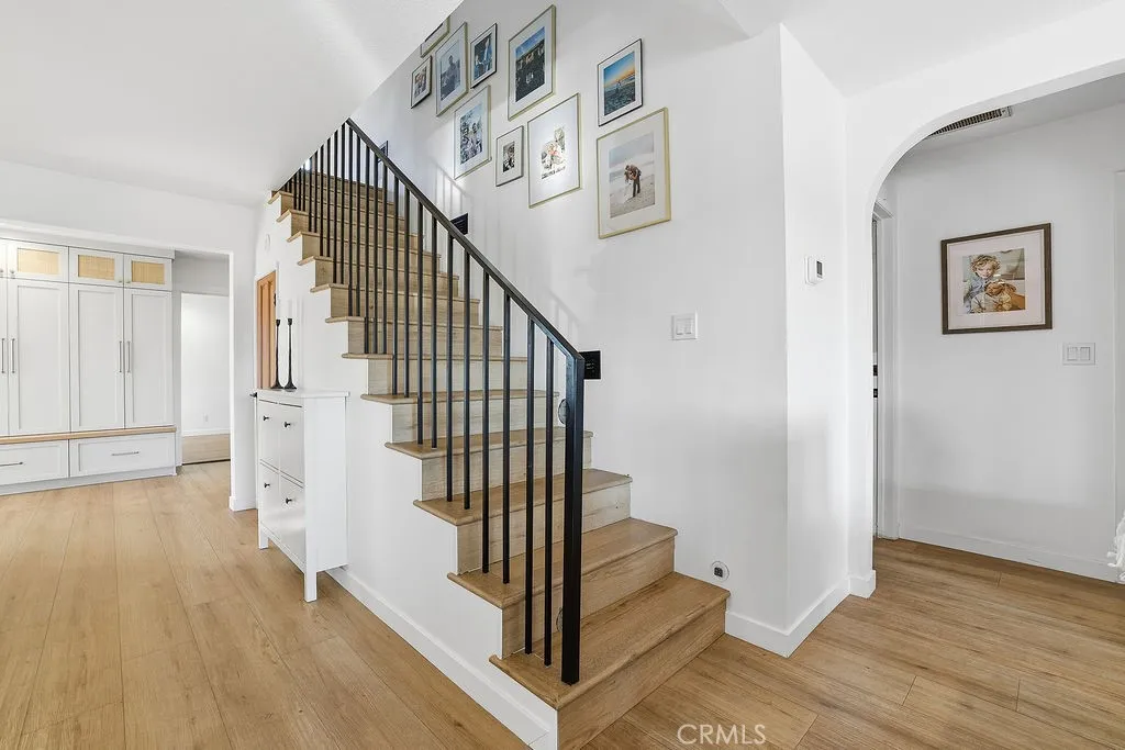 Situated on a prized corner lot in Northwest Torrance, this beautifully updated 4-bedroom, 3-bath home offers refined comfort, thoughtful design, and exceptional livability for modern family life. A classic white picket fence, manicured landscaping, and a welcoming covered porch create a warm first impression. Inside, wide-plank flooring, recessed lighting, graceful arched entryways, and a bright, open layout create an inviting atmosphere designed for connection and everyday ease. The fully remodeled gourmet kitchen serves as the heart of the home, featuring custom wood cabinetry, designer ceramic countertops combining timeless beauty with outstanding durability, an oversized island with seating, premium stainless steel appliances including a professional-grade range, elegant pendant lighting, open shelving, and generous storage. The kitchen flows effortlessly into the dining and main living areas, making it ideal for family meals and entertaining. Multiple living spaces provide flexibility rarely found in the neighborhood. In addition to the main living room, a separate media and family room offers a relaxed retreat with custom built-ins, French doors opening to the yard, and a beautifully designed entertaining bar with beverage refrigerator, wine storage, and display shelving—perfect for hosting or unwinding at home. Thoughtful built-ins continue throughout the residence, including a stylish mudroom and entry area with bench seating and storage, as well as dedicated workspace nooks that enhance daily routines. Upstairs, the primary suite is a serene sanctuary featuring vaulted ceilings, a cozy fireplace sitting area, abundant natural light, and a private balcony. The ensuite bath includes dual vanities, a soaking tub, and a separate shower, complemented by a spacious walk-in closet. Additional bedrooms are generously sized and thoughtfully arranged, ideal for family, guests, or home office use. Outdoor living is equally appealing. The fully enclosed yard offers multiple spaces for entertaining and play, including a large patio for dining, a turf lawn perfect for kids or pets, and additional seating areas that extend the living space outdoors. A detached garage, gated driveway, and ample storage provide everyday convenience. Ideally located near Torrance schools, parks, shopping, and dining, this home offers a rare blend of elevated design, family-focused functionality, and lifestyle appeal in one of the South Bay’s most sought-after neighborhoods.
