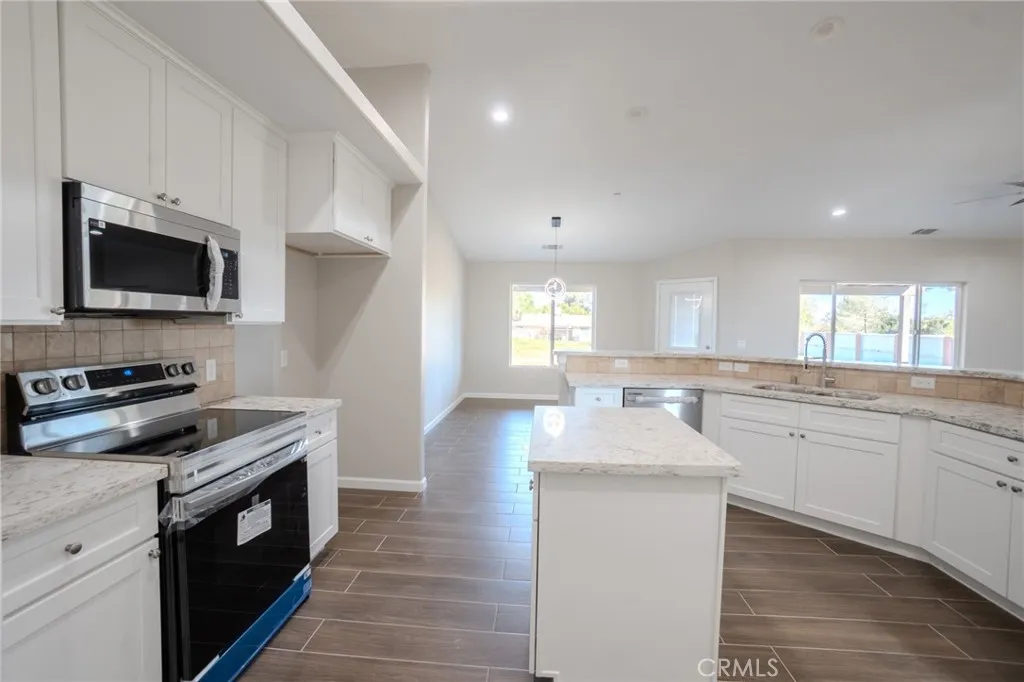 GORGEOUS New Construction situated in Hesperia. This wonderful home is with 4 Bedrooms & 2.5 Baths. Master with Large Closets & Separate Tub & Shower. Separate Family Room w/ F.P & tile flooring. Large Kitchen with Quartz counter tops, custom backsplash tile flooring, lots of cabinets & large pantry… Formal Dining, Breakfast Nook, Indoor Laundry, covered patio & 3 car garage. Almost a straight shot to the Freeway. Solar is Owned and is installed with the minimum standards as required. This is the Home you have been searching for!