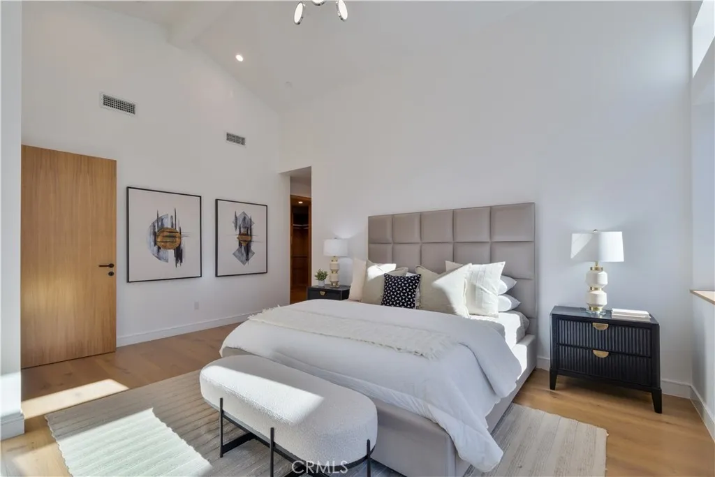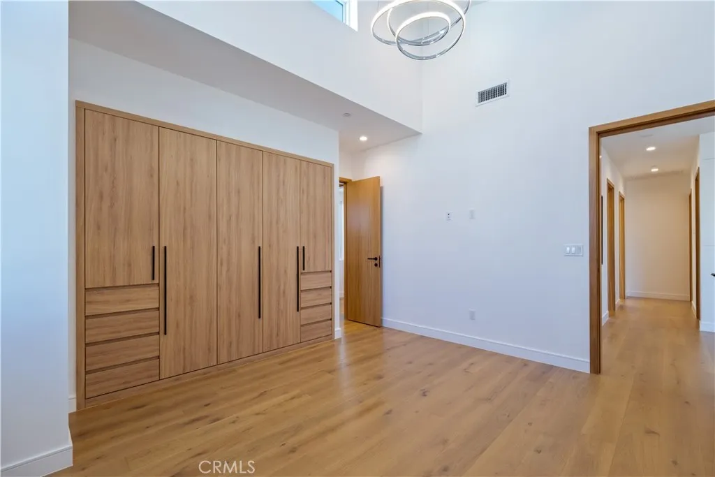 The master suite is a true retreat, featuring a private balcony, a stunning walk-in closet, spa-like bathroom with double-glazed porcelain tiles, a standalone soaking tub, and a two-person shower. Custom built-in closets provide ample storage and imported solid Nordic Oak interior doors from Spain, complete with magnetic latches, add a sophisticated touch.