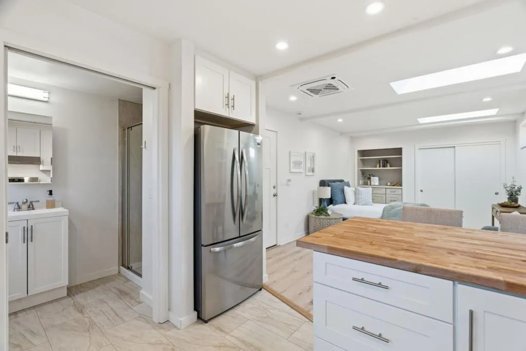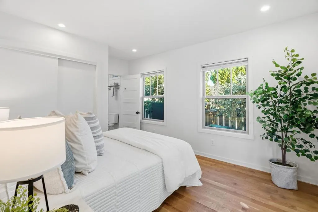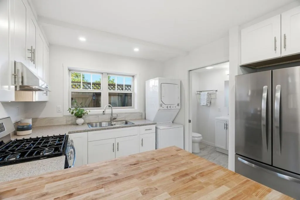 Tucked behind thoughtfully curated greenery, this charming Craftsman-style property offers a peaceful space in the heart of Santa Cruz. The main residence features two bedrooms and one bath. The primary bedroom features access to a south-facing sunroom that could be used as a home office, nursery, or yoga room. The home is complemented by a fully detached ADU with two separate entrances, creating exceptional curb appeal and flexible living options. The recent full-scale remodel includes oak hardwood floors throughout, faux beams accenting the living room, matching stainless steel appliances, Corian countertops, and space-saving stacked laundry. Original charm has been preserved with a refurbished built-in hutch featuring shelving and drawers. The fully detached ADU complements the Craftsman aesthetic and presents an ideal opportunity for rental income, guest accommodations, or extended living. Multiple patios invite you to enjoy Santa Cruzs nearly year-round mild climate, perfect for al fresco dining surrounded by the fragrant strawberry guava and camellia trees. Conveniently located near major commuter routes, popular restaurants, and local shops, with easy access to world-class recreation, including surfing at The Lane and golfing at DeLaveaga, this property truly has it all.
