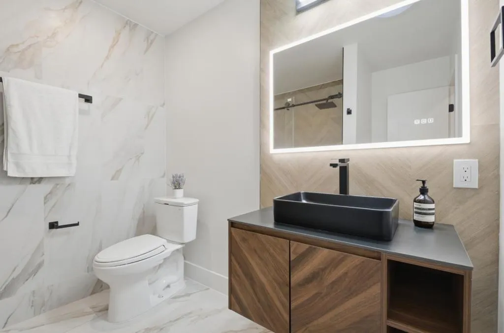 Designed with intention and crafted with heart, this is not a mass-produced renovation. Every detail of this fully remodeled and expanded home was personally hand-selected by the seller, who poured his heart and soul into creating this home’s next chapter. At the center of the home, an open-concept kitchen and adjoining living space, anchored by a striking quartz waterfall island, Samsung appliances, and thoughtfully placed ambient lighting. A collapsible glass that creates transitional indoor-outdoor living, ideal for both everyday life and entertaining. The home offers four bedrooms and three bathrooms, including two en-suite bedrooms that provide flexibility, privacy, and multigenerational appeal. Resort-style bathrooms, subtle night-light detailing throughout the home, and a permitted 499-square-foot addition enhance both function and elevated living. Modern systems, smart-home features including Google Nest and Ring cameras, and curated finishes throughout reflect a level of care rarely found. Assigned to Easterbrook Discovery K-8 and Prospect High School, and located minutes from top private schools, this bright home stands apart as a thoughtfully curated residence where design, craftsmanship, and genuine passion come together to create something truly special.