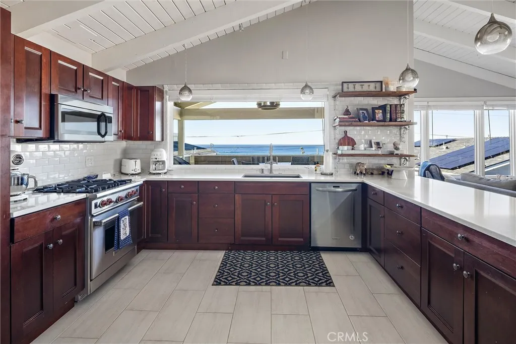 Hillside Haven with the benefit of a short term rental license and spacious floorplan. This lovely Cayucos home provides sweeping coastal views and is situated on a quiet neighborhood street used mostly by local traffic. The 2-car garage is fronted by a wide drive for off-street parking. Stone accents highlight the front. A split entry offers hillside views, and the ocean peeks over nearby houses. The main living area is a half flight up with skylight above soaring ceilings and a massive hearth. There’s a handy wet bar too! Windows and deck supply wide coastal views above the rooflines below. The kitchen has generous size and ample storage with quality appliances, cabinetry and fixtures. A generous dining area has a guest bath nearby and china storage. The outside deck area serves for viewing, but is large enough for dining. Downstairs, the primary suite boasts a shower and tub, plus more generous storage. The lower level has a total of 3 bedrooms, 2 spacious bathrooms and outside access. Spacious design, fine views, and lots of use options. See it soon.