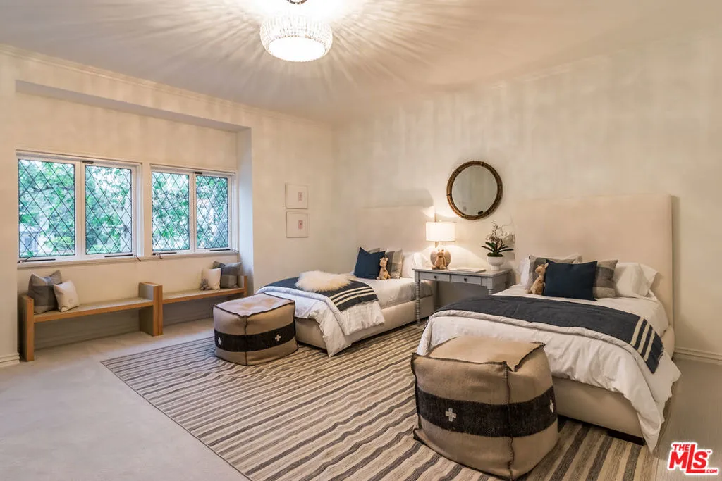 This trophy estate in the Beverly Hills Flats sits on an expansive 30,000-square-foot lot with approximately 130 feet of frontage on the coveted 800 block of Crescent Drive. The privately gated residence boasts a north/south fully lit tennis court, timeless architecture with impressive interior scale and soaring ceilings, and a refined, contemporary layout with six bedrooms and eight bathrooms, including four expansive en-suite bedrooms on the upper level and two additional guest suites on the main floor. Interior details include intricate parquet oak flooring, extensive custom cabinetry, a full bar, and a remodeled kitchen designed for both function and entertaining. The oversized primary suite offers generous proportions and a wood-burning fireplace. Additional amenities include a dry sauna, a three-car side-by-side attached garage, and a gated circular driveway. The tennis court has been remodeled along with other recent improvements, while mature landscaping provides exceptional privacy throughout the grounds. Located just moments from the Beverly Hills Hotel and the city’s world-class shops, restaurants, and amenities, opportunities rarely come along to purchase a legacy estate in the city’s best location. Please note: the property is currently being marketed with prior photography. New photography will be available in approximately two weeks.