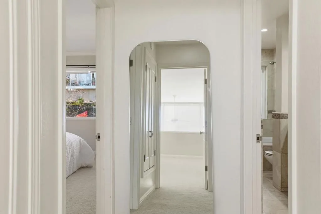 Nestled in the picturesque San Carlos Hills, this light-filled upper-level residence offers breathtaking panoramic views of the Bay and Silicon Valley. With soaring 18-foot ceilings and floor-to-ceiling windows, the home is bathed in natural light throughout its contemporary two-story layout. The spacious living area, equipped with a flexible dining room that can be converted into a third bedroom or home office, is complemented by a loft-style bedroom overlooking the living space, providing sweeping views. The main level features a cozy living room, a fully equipped kitchen, a dining area, a full bath, an in-unit laundry room, and a private balcony, perfect for enjoying peaceful days with frequent sightings of deer and hummingbirds. For added comfort, the home is equipped with a Nest thermostat, a new furnace, and cellular electric blinds. Residents have easy access to nearby trails and a dog park, while still being close to top-rated San Carlos schools, charming downtown shops and dining options, major tech campuses, Caltrain, and highways. The property includes two deeded parking spaces, with HOA amenities covering water, a tranquil pool, and serene walkways within an intimate 36-unit community.