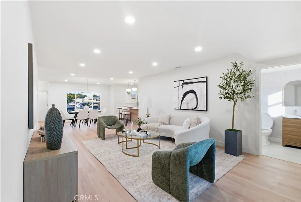 Welcome to 15813 Bonsallo Ave, a beautifully fully remodeled 4-bedroom, 3.5-bath home tucked away on a quiet cul-de-sac in the heart of Gardena’s desirable 90247 neighborhood. This turnkey residence has been thoughtfully redesigned with modern living in mind, featuring an open and light-filled floor plan, all-new finishes, and high-quality upgrades throughout. The stunning chef’s kitchen showcases European-style two-tone cabinetry, quartz countertops, stainless steel appliances, a peninsula with breakfast bar, and designer backsplash, flowing seamlessly into spacious living and dining areas ideal for both everyday comfort and entertaining. Enhancing functionality and comfort, the home offers both a formal living room and a separate family room. The home offers two private ensuite bedrooms, making it perfectly suited for multi-generational living, guests, or flexible work-from-home needs. Additional highlights include new HVAC, updated electrical and plumbing, waterproof laminate flooring, recessed lighting, fully remodeled bathrooms, a dedicated laundry room and pantry, and a finished garage with epoxy floors. Outside, enjoy fresh landscaping, new fencing and gates, modern exterior finishes, and a side-by-side driveway, all enhancing curb appeal and functionality. Ideally located near shopping, dining, parks, and everyday conveniences, with easy access to Del Amo Fashion Center, local restaurants, and major commuter routes, this home blends modern design, versatility, and a prime South Bay location. A rare opportunity to own a truly move-in-ready property designed for today’s lifestyle.