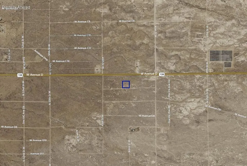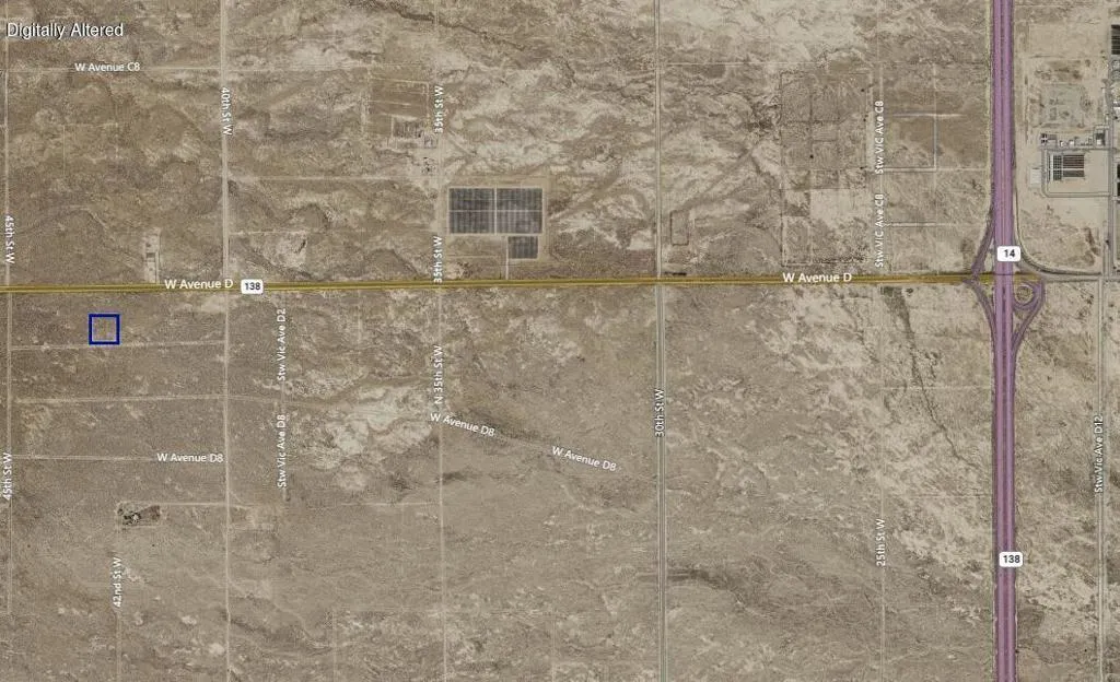 Hwy 14 north to West Ave. D ( Hwy 138), west to 43rd St, property is 310 feet south of Ave. D. Google Maps Geo-Coordinates are (34.77523569, -118.20710941)