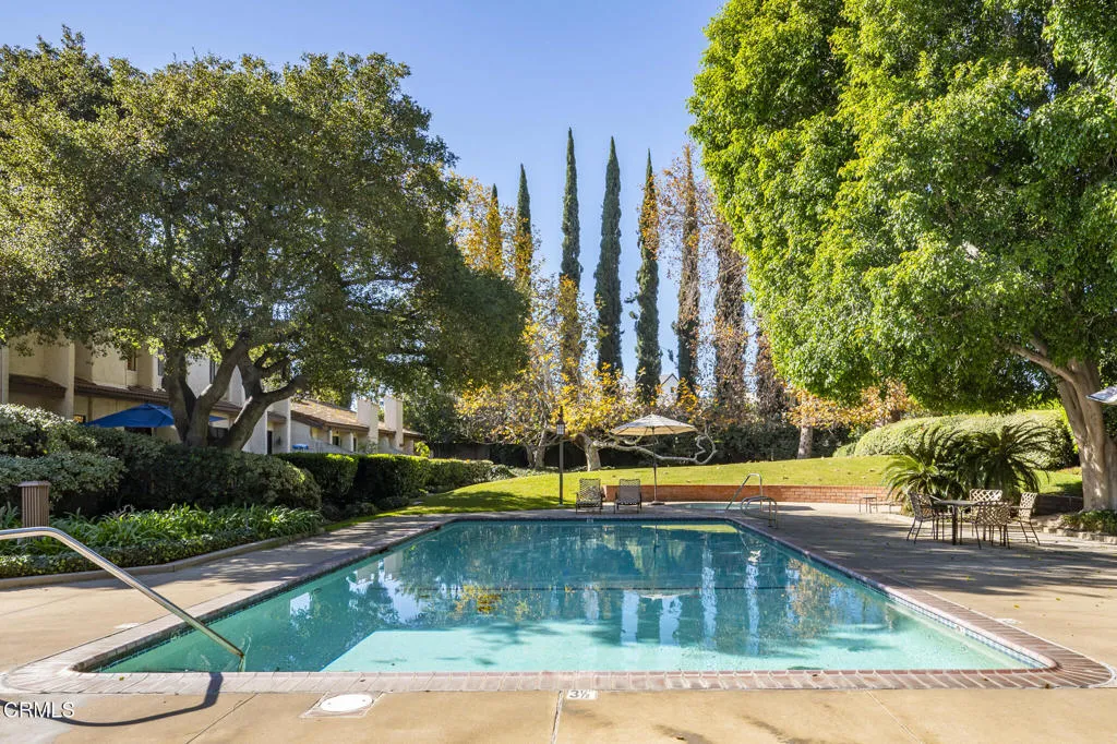 Located within the highly sought-after San Marino school district with award-winning schools, this lovely townhome is a rare find. It is ideally situated in the best location within the complex, offering both privacy and beautiful surroundings.The living room features a charming fireplace and opens directly to a private patio, creating a seamless indoor-outdoor living experience with tranquil views of the greenbelt and park-like grounds. Enjoy direct access to the resort-style pool and spa, enhancing the relaxed lifestyle this community offers.A formal dining room provides an elegant space for entertaining, while the light-filled atrium with mature plants adds a unique architectural element and a serene ambiance throughout the home. The expansive primary bedroom on the second level is a true retreat, featuring vaulted ceilings, abundant natural light, park-view windows, a walk-in closet, and a private ensuite bathroom. The spacious second bedroom also offers its own ensuite bath, providing comfort and privacy. Additional highlights include an attached garage with inside laundry hookups, ample storage throughout. Conveniently located near schools, shopping, and transportation, this exceptional townhome offers a rare opportunity not to be missed.