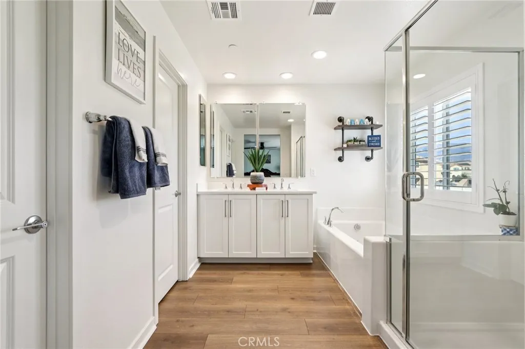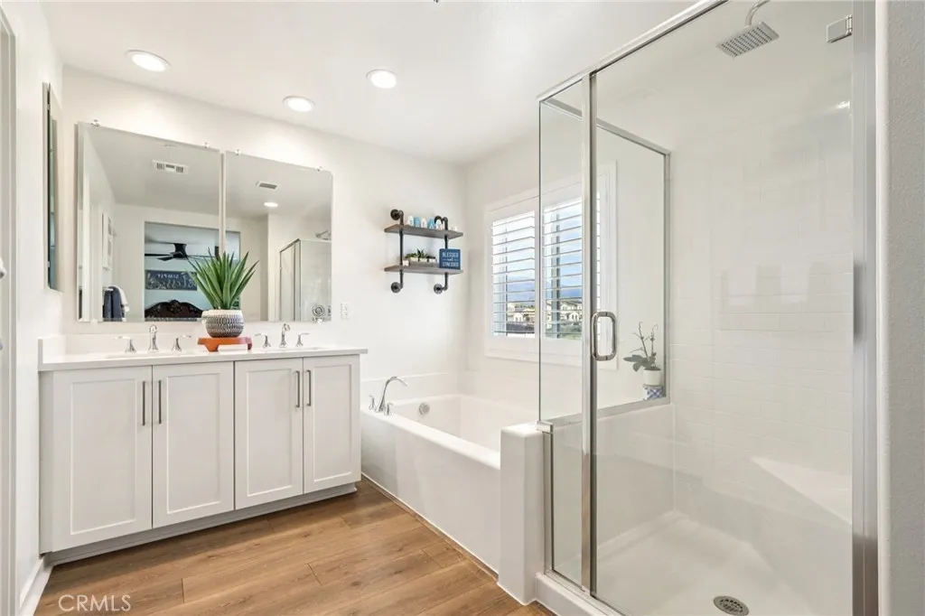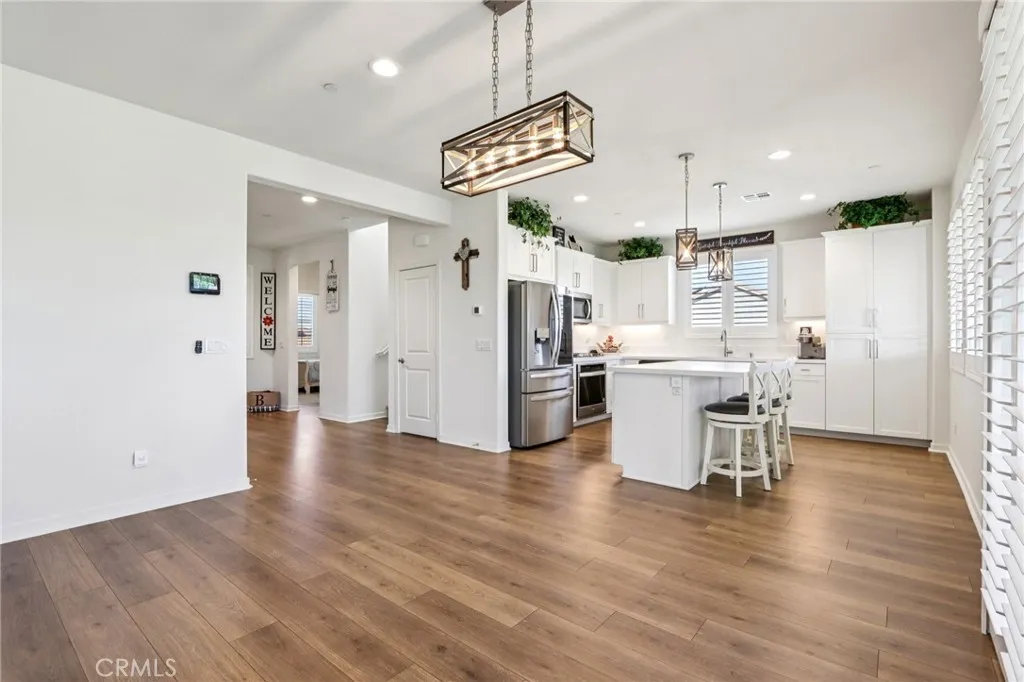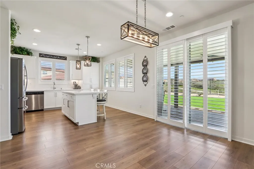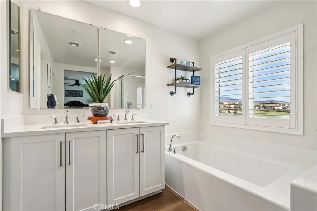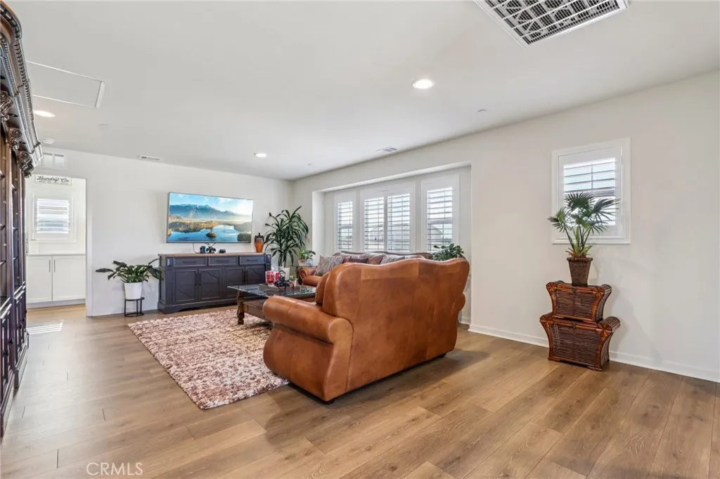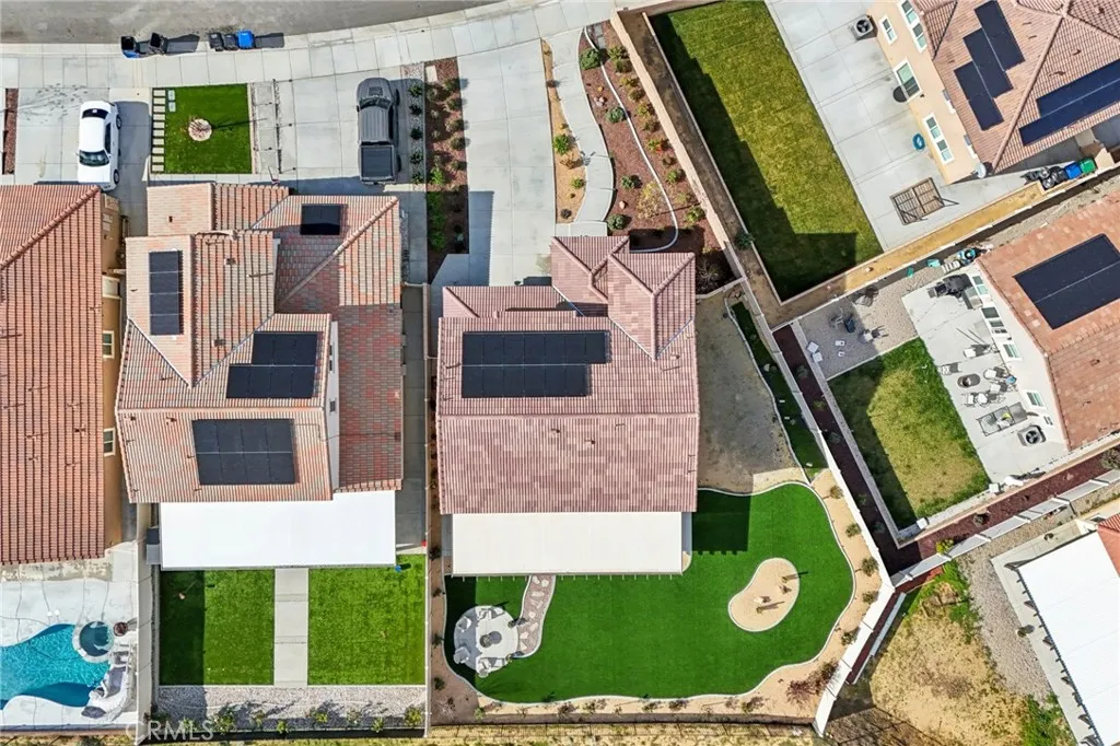 Welcome to The Fairway Community, where you can experience modern resort-style living at its finest. This breathtaking premium corner lot home sits on an expansive 7,815 sq. ft. lot overlooking The Legends GOLF COURSE with stunning MOUNTAIN VIEWS—a rare find in today’s competitive real estate market. Properties in this sought-after neighborhood consistently trend above average for both appreciation and desirability, making this an exceptional investment opportunity as well as a dream residence. The exterior features self-maintaining landscaping, including turf, decorative rocks, vinyl fencing, and drought-tolerant plantings, ensuring both excellent curb appeal and easy upkeep. The outdoor space is perfect for year-round entertaining, featuring an Alumawood patio cover with recessed lighting, ceiling fans, TV, and a dedicated BBQ and dining area—ideal for hosting gatherings or relaxing with loved ones while enjoying the scenic backdrop. Inside, you’ll find a bright, open 2,239 sq. ft. floor plan with four spacious bedrooms and three full bathrooms. A convenient main-floor bedroom and bath provide an ideal space for guests or multi-generational living. The chef’s kitchen is a showstopper, featuring white cabinetry, stainless steel appliances, quartz countertops, and a large island with designer pendant lighting and extra seating. Upstairs, a large loft offers flexible additional living space, while a well-appointed laundry room with extra storage adds everyday convenience. The spacious master suite offers picturesque views, a large walk-in closet, and a luxurious bathroom featuring dual quartz vanities, a soaking tub, and a walk-in shower, creating your own private retreat. Additional features include earth-tone luxury vinyl flooring, wood plantation shutters, recessed lighting, and ceiling fans throughout. This meticulously maintained home is truly move-in ready that includes a tankless water heater and “OWNED SOLAR!”—a major value in today’s energy-conscious market. Residents of The Fairway Community enjoy resort-quality amenities, including a clubhouse, gym, two sparkling pools, a jacuzzi, a splash pad, a playground, and picnic areas. Schedule your private showing today and secure your place in one of the area’s most desirable communities!