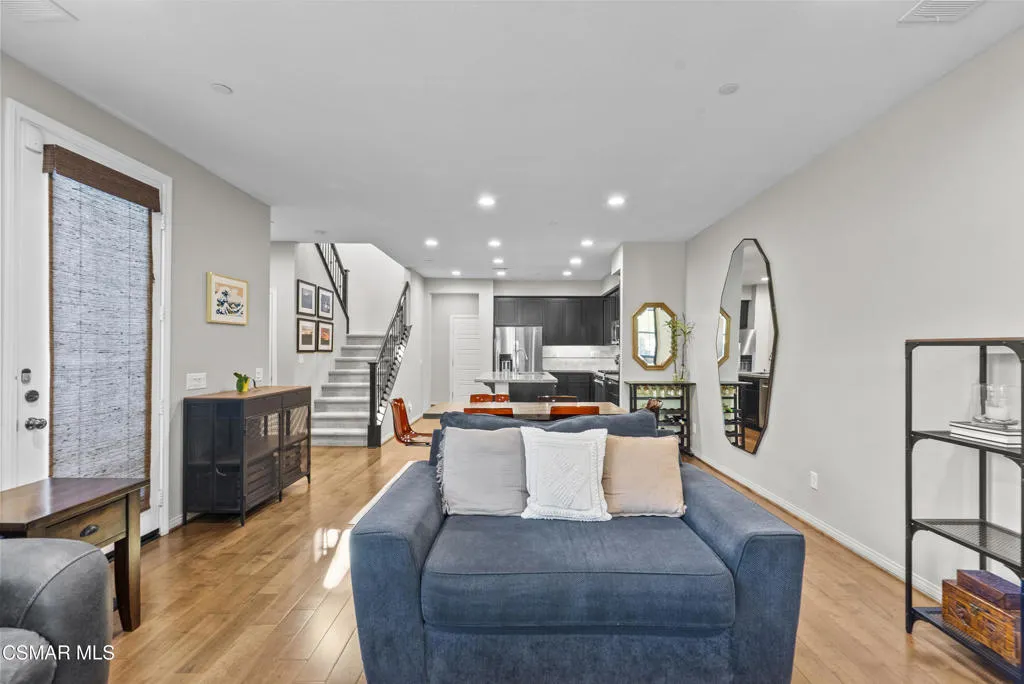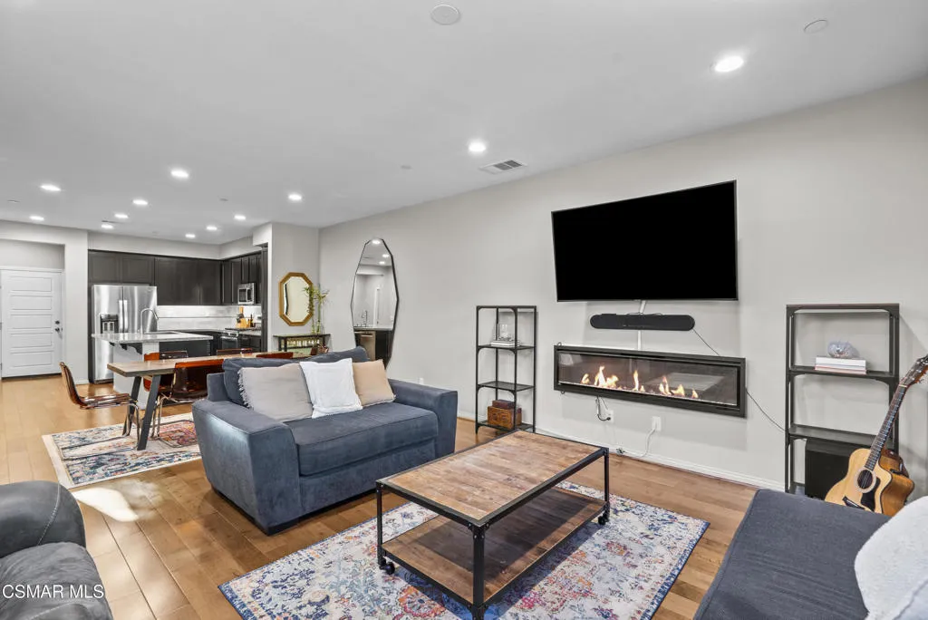 Exceptionally maintained and extensively upgraded 3-bedroom, 2.5-bath corner-unit condo ideally located next to Happy Face Hill. This home offers a perfect blend of comfort, functionality, and thoughtful design. The interior features hardwood flooring, upgraded carpet, and an elegant wrought-iron banister that adds architectural interest.The living area is warm and inviting with an electric fireplace, while abundant natural light enhances the open layout. The kitchen has been refreshed with a new dishwasher, new kitchen faucet, and newer refrigerator, and is designed for both everyday living and entertaining. A washer and dryer are included for added convenience.All bathrooms have been tastefully updated, including marble tile in the primary bathroom and a new pedestal sink in the half bath. The home also includes custom closets, blinds and Roman shades throughout, and upgraded lighting with recessed can lights, dimmers, and wiring for ceiling fans in all bedrooms.Additional features include custom cabinetry in the garage, Nest cameras, Ring doorbell, fire sprinklers, and a spacious 2-car garage. The private outdoor space is fully landscaped with custom pavers and a serene water fountain, creating a peaceful setting for relaxing or entertaining.As a corner unit, the home offers added privacy and enhanced light. , this move-in-ready property offers pride of ownership and quality upgrades throughout.