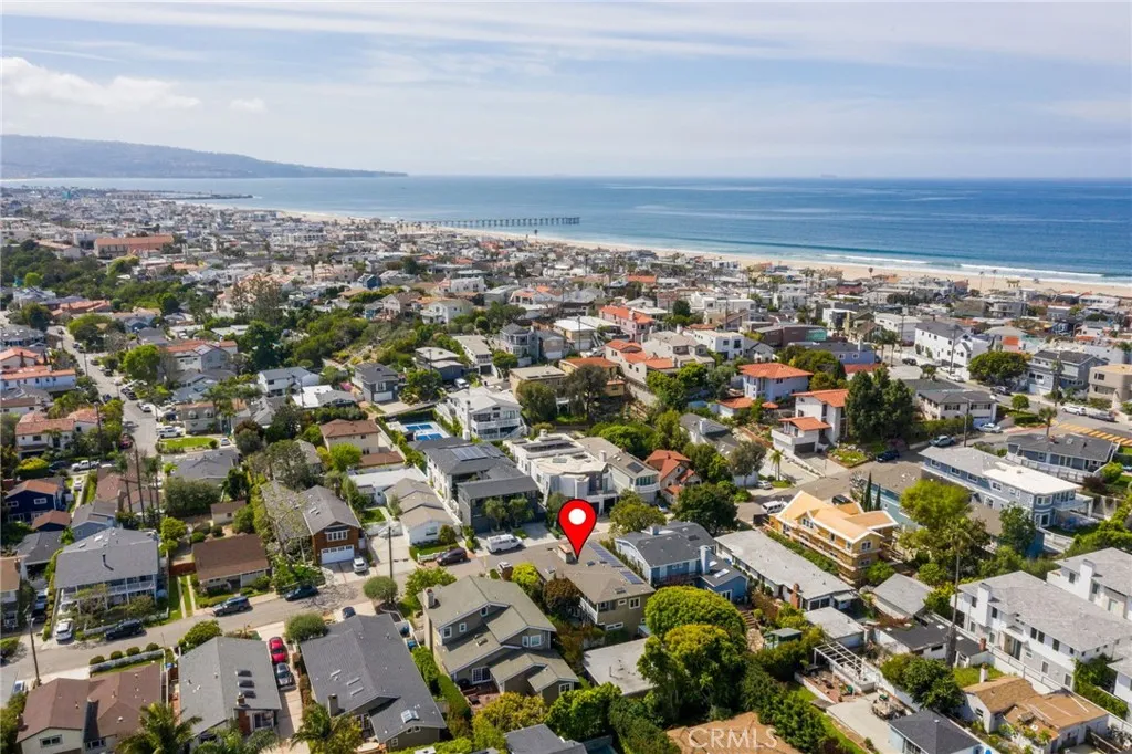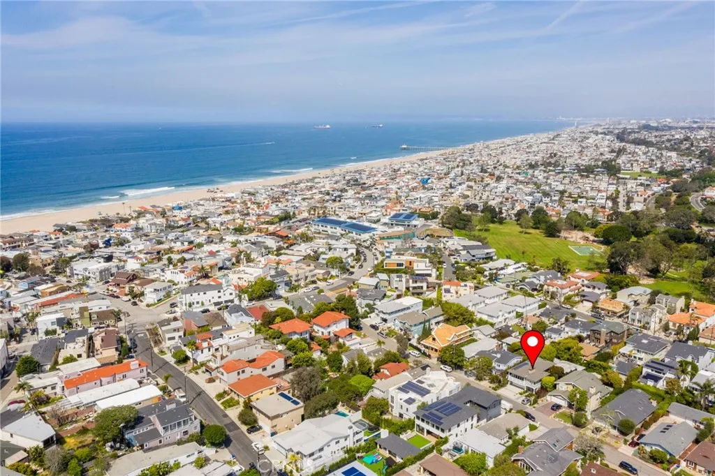 Coastal Living, Redefined — Two Distinct Homes in the Coveted Sand Section of North Hermosa Beach. An exceptional opportunity awaits just steps from the sand, Valley Park, and the vibrant energy of Pier Avenue. Situated on an expansive 6,251 sq ft lot in one of the most desirable pockets of North Hermosa Beach, this unique property features two beautifully crafted residences — a custom contemporary craftsman main home designed by the late Stan Anderson, and a charming mid-century modern back house offering privacy and versatility. The main home, built in 2013, showcases refined coastal style and offers 2,128 square feet of living space with 3 bedrooms, an office, two full bathrooms, and two half baths. Solid wood flooring, curated designer furnishings, and thoughtful architectural touches create a warm and elevated atmosphere throughout. The sun-drenched great room on the second level boasts vaulted ceilings, a cozy fireplace, and custom tri-fold doors that open to an expansive balcony — ideal for effortless indoor-outdoor living. The chef’s kitchen is a showstopper, featuring black soapstone countertops, a large island, custom cabinetry, luxury appliances, and a walk-in pantry. Off the living room is a small private office full of natural light. The serene primary suite offers a private retreat with a wrap-around balcony, spacious walk-in closet, and spa-like bathroom complete with heated floors, a soaking tub, and dual vanities. Downstairs, two additional bedrooms share a full bath and are anchored by a cozy den and built-ins, while the private backyard oasis is perfect for relaxing or entertaining under string lights by the fire pit. The two-car garage has ample storage and option to add EV charging. There’s additional two-car parking in the driveway. The back house, built in 1957, is a beautifully maintained 3-bedroom, 2-bath mid-century modern gem offering approximately 1,200 sq ft of living space. Enjoy the tranquility of a 1,500 sq ft private patio, your own laundry area, and dedicated off-street parking for two cars. With its own private walkway to the back house and ample separation from the main house, this is an ideal setup for extended family, guests, or rental income. A rare find in Hermosa Beach, this exceptional property blends timeless architecture, modern luxury, and a premier coastal location — creating the ultimate beachside lifestyle. Don’t miss this one-of-a-kind opportunity to own a slice of paradise in the Sand Section.