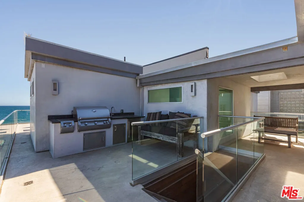 Discover unparalleled coastal elegance in this breathtaking oceanfront estate, perfectly poised on Malibu’s pristine shores with direct beach access via a private staircase and mesmerizing 180-degree Pacific vistas. This contemporary three-level masterpiece offers four bedrooms, three and a half bathrooms, floor-to-ceiling glass walls that invite natural light to dance across every room, and multiple ocean-view terraces perfect for savoring sunsets or hosting intimate gatherings. The chef’s kitchen, a culinary dream with top-tier appliances and sleek cabinetry, anchors the main residence, while an attached two-bedroom, one-bath guest suite with a full kitchen, washer/dryer, and private entrance provides a versatile retreat for guests or family. With a three-car garage plus parking for four or more vehicles, and a prime location steps from scenic hiking trails, vibrant restaurants, chic boutiques, and everyday essentials, this sanctuary blends modern sophistication, privacy, and the timeless allure of Malibu’s coastal lifestyle.