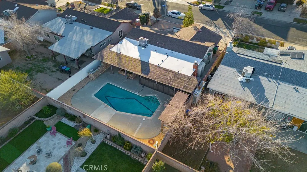 This home features an open kitchen with a dining area leading into the family room with a fireplace to keep you cozy and warm. The living area offers tile floors and a large wall of custom shelves. Beautiful view from the family room looking out over the fabulous backyard. Spacious in-ground pool, with new pool pump, huge spa, and new removable pool fencing. Patio cover, great for relaxing. Master bedroom has a sliding door leading to the backyard pool and spa. The house has newer exterior paint and custom stone facade, with water-wise desert landscaping. Garage has indoor/outdoor carpet and custom cabinets for storage on all walls. Centrally located to schools and shopping! This home shows true pride of ownership, schedule a viewing with your realtor today!