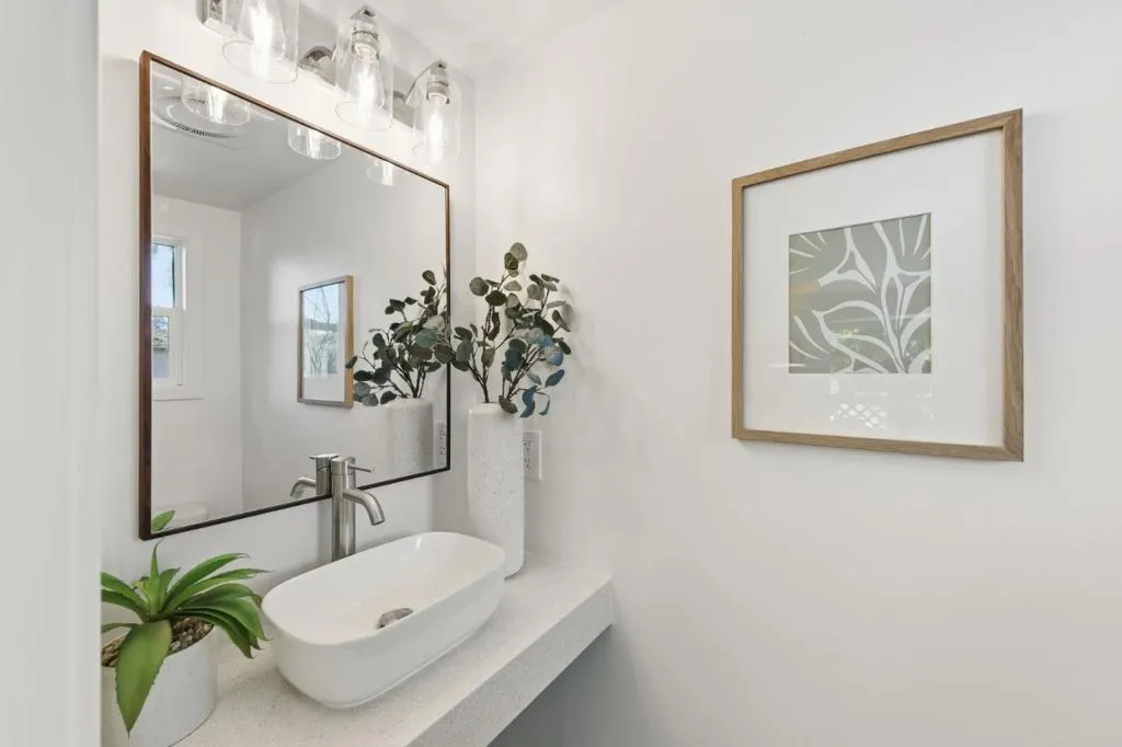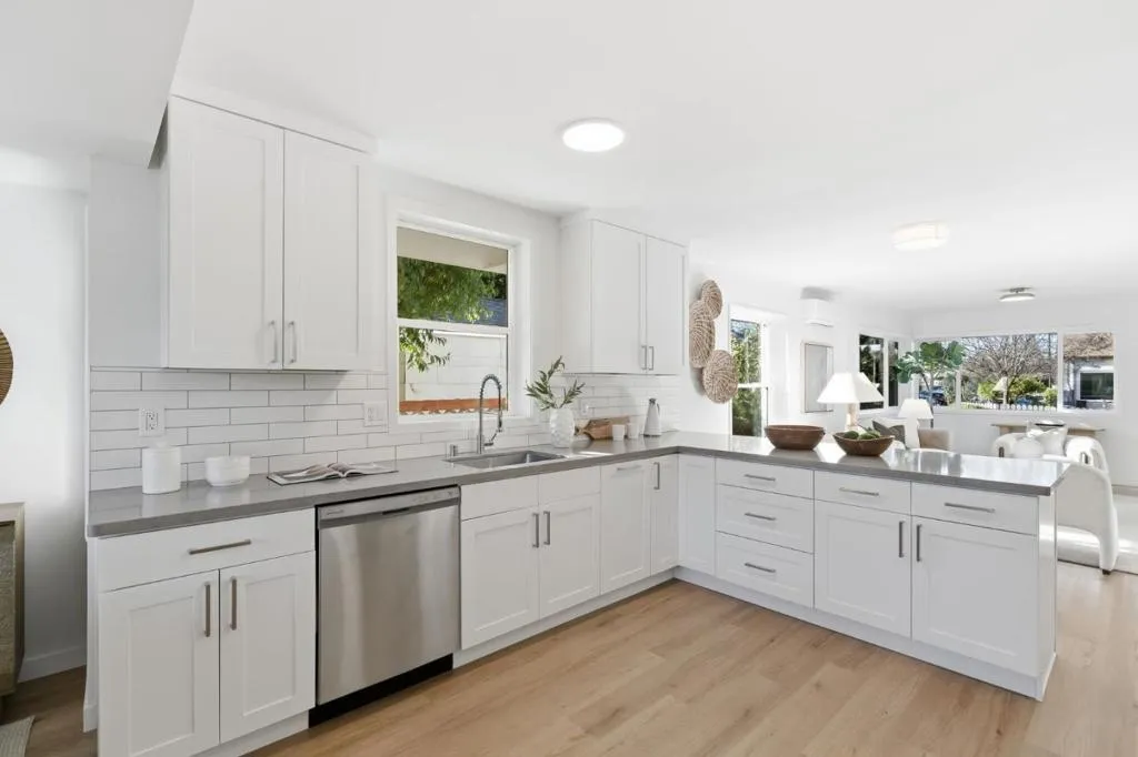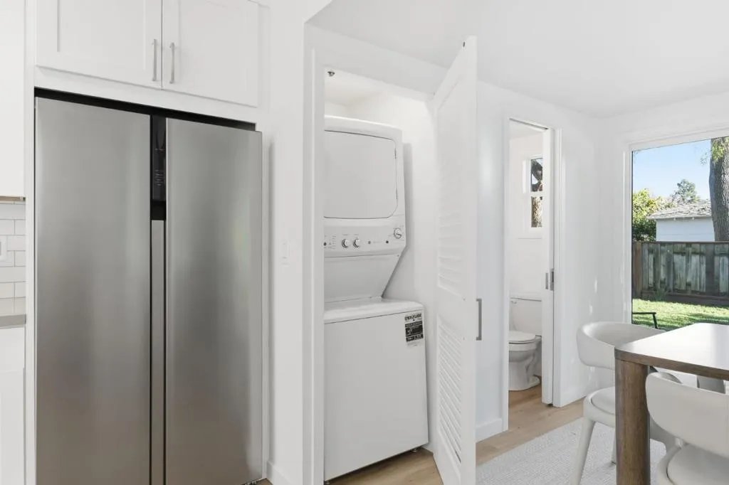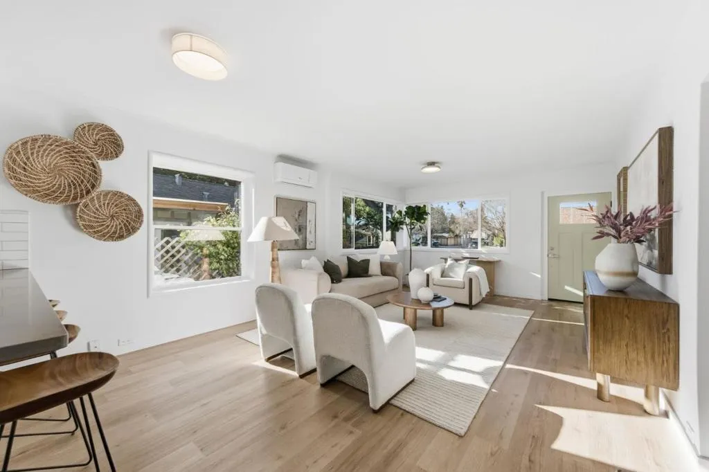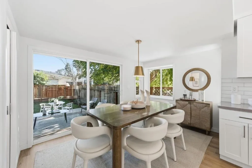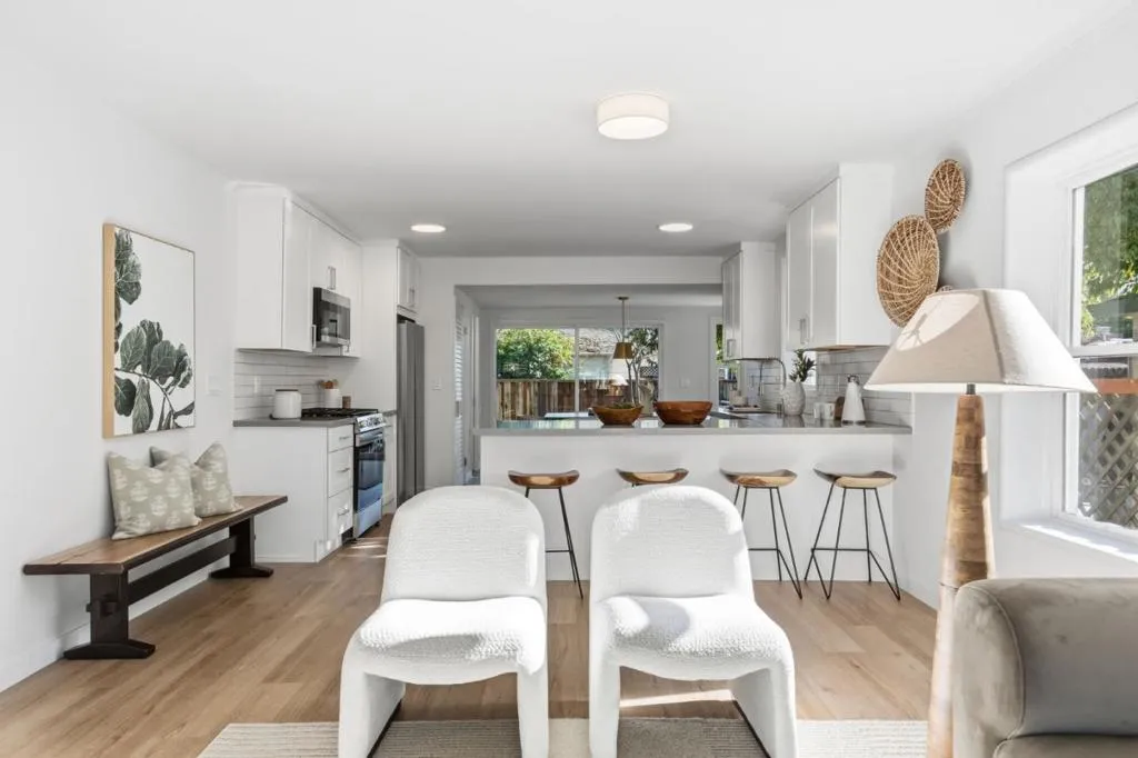 Tucked just moments from downtown, 711 Roosevelt Avenue offers the rare combination of refined design, everyday comfort & future potential- all wrapped into a beautiful, turnkey home. The home features 2 spacious bedrooms & 1.5 beautifully updated baths, with the main bathroom designed as a true retreat. A tub wrapped in dramatic marble with a niche & bench and softened by light wood & rattan accents creates a natural, spa-like atmosphere. The open-concept living & dining areas flow effortlessly into a thoughtfully designed kitchen. The timeless kitchen anchors the home with white shaker cabinetry, natural stone countertops, classic subway tile, all-new stainless steel appliances & a sleek peninsula that naturally invites gathering. Air conditioning & heat provided by new mini-split ensures year-round comfort, while the seamless layout makes the home feel both polished & effortless. Indoor laundry closet for ease and convenience. Outdoors, a lovely, grassy yard with a sun-washed deck creates an ideal extension of the living space, with ample room for entertaining, relaxing, or ADU potential. Off-street parking adds everyday ease, & the homes proximity to shops, dining, and transit in downtown Redwood City makes this location as convenient as it is desirable.