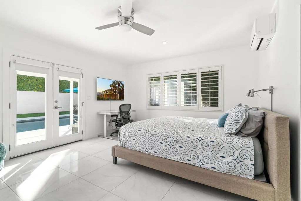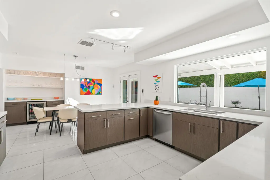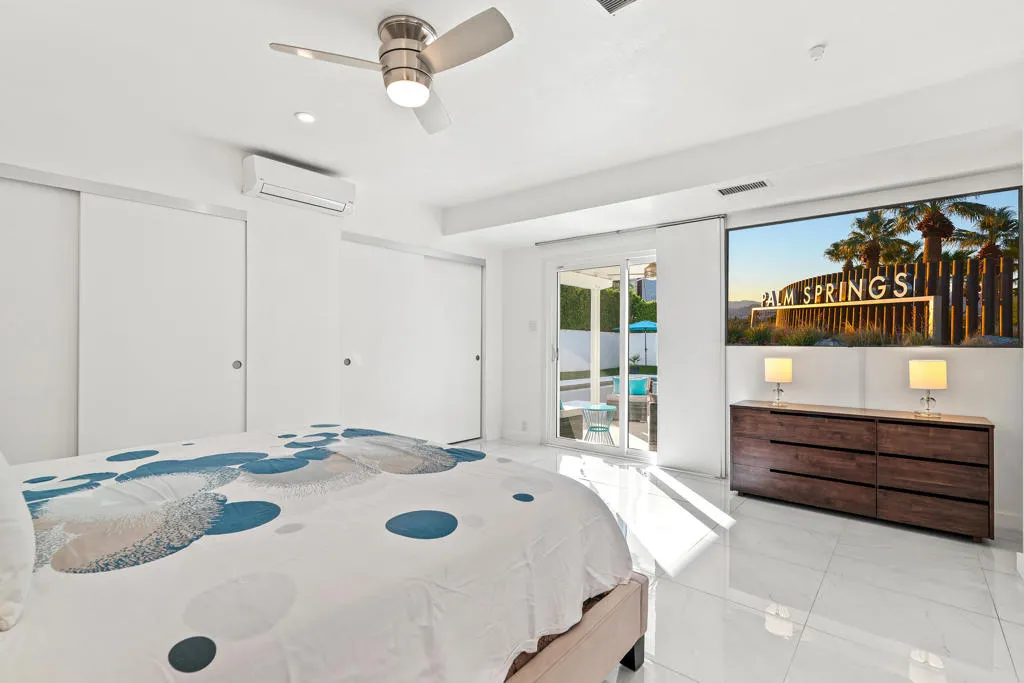 Step into the quintessential desert lifestyle with this impeccably updated 1966 mid-century residence, perfectly situated on a sprawling walled and gated corner lot in the highly coveted Tahquitz River Estates. This home masterfully blends timeless architectural charm with high-end contemporary upgrades, offering the ideal sanctuary for those seeking the authentic Palm Springs aesthetic. From the moment you arrive, the inviting mature landscaping and refreshing patio entry provide striking curb appeal. Inside, the home flows effortlessly across a spacious floor plan featuring beautiful flooring throughout and a stunningly remodeled kitchen equipped with premium quartz countertops and stainless steel appliances. The layout is designed for ultimate comfort and privacy, highlighted by dual primary suites that both offer direct access to your private outdoor oasis. Step outside to find a large pebble tec saltwater pool framed by lush Ficus hedges and breathtaking, unobstructed views of the San Jacinto Mountains. Efficiency meets luxury with a fully owned solar system with twin batteries, providing sustainable energy and significant cost savings for years to come. Located on Fee Land with no HOA fees, this home is minutes from downtown’s world-class dining, shopping, and entertainment. Priced to sell in 2026, this property represents an exceptional opportunity to own a piece of desert history.