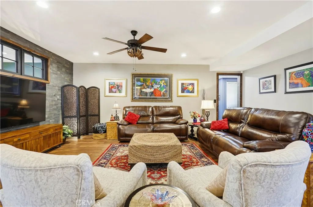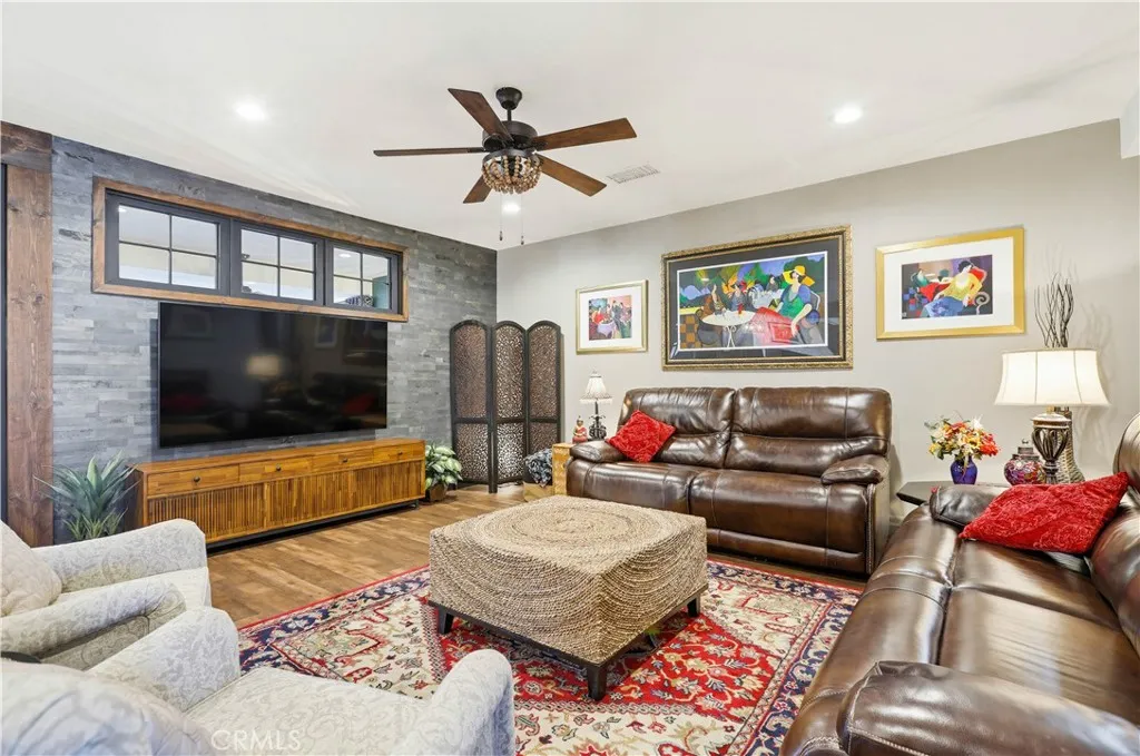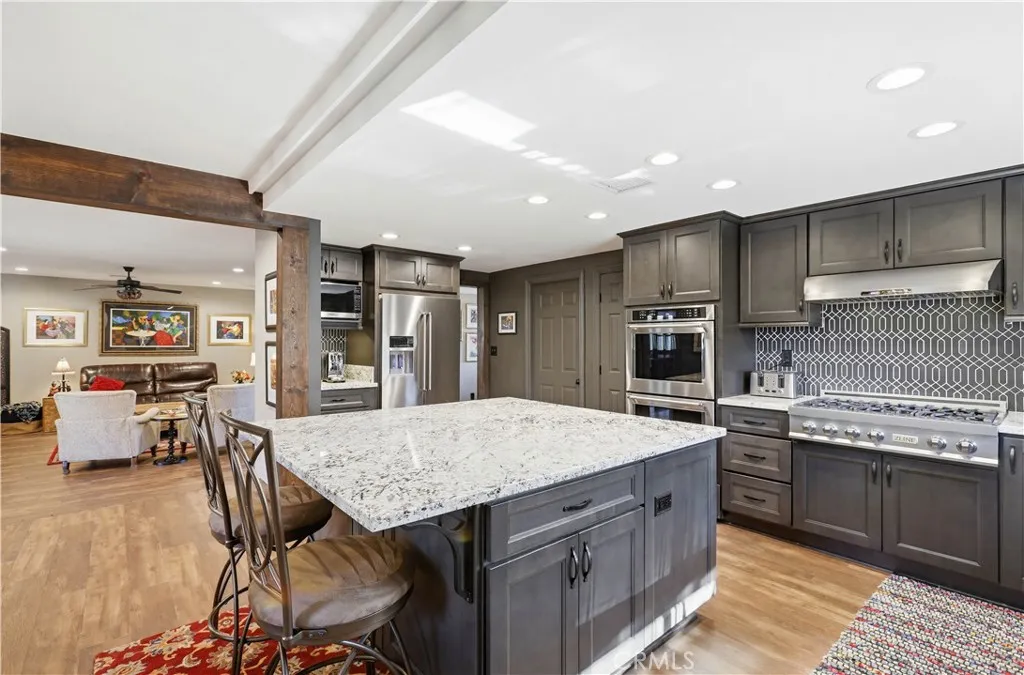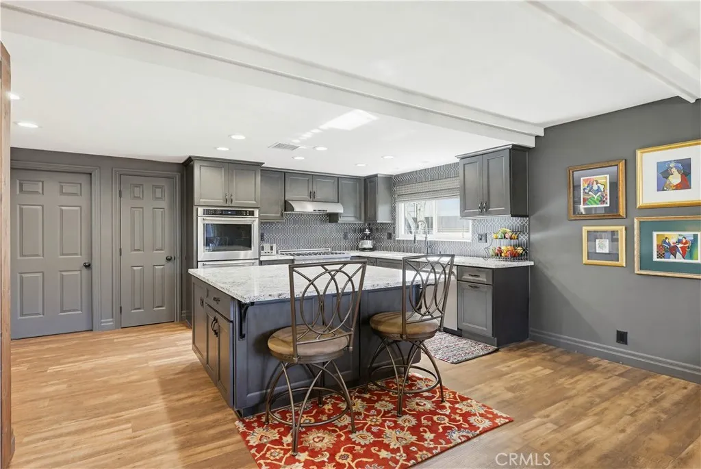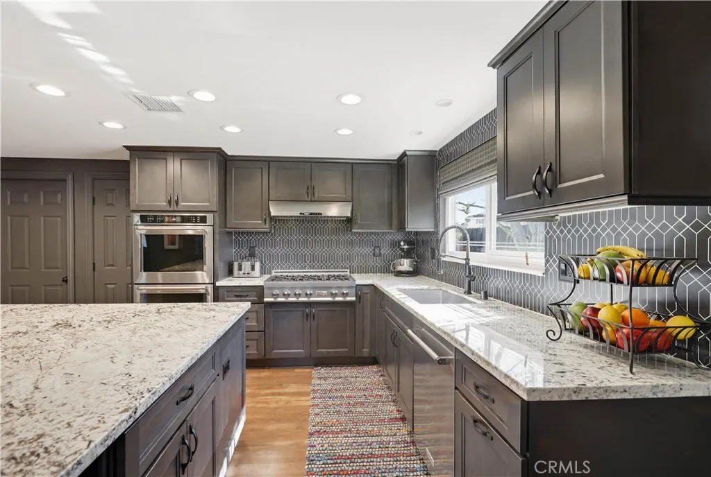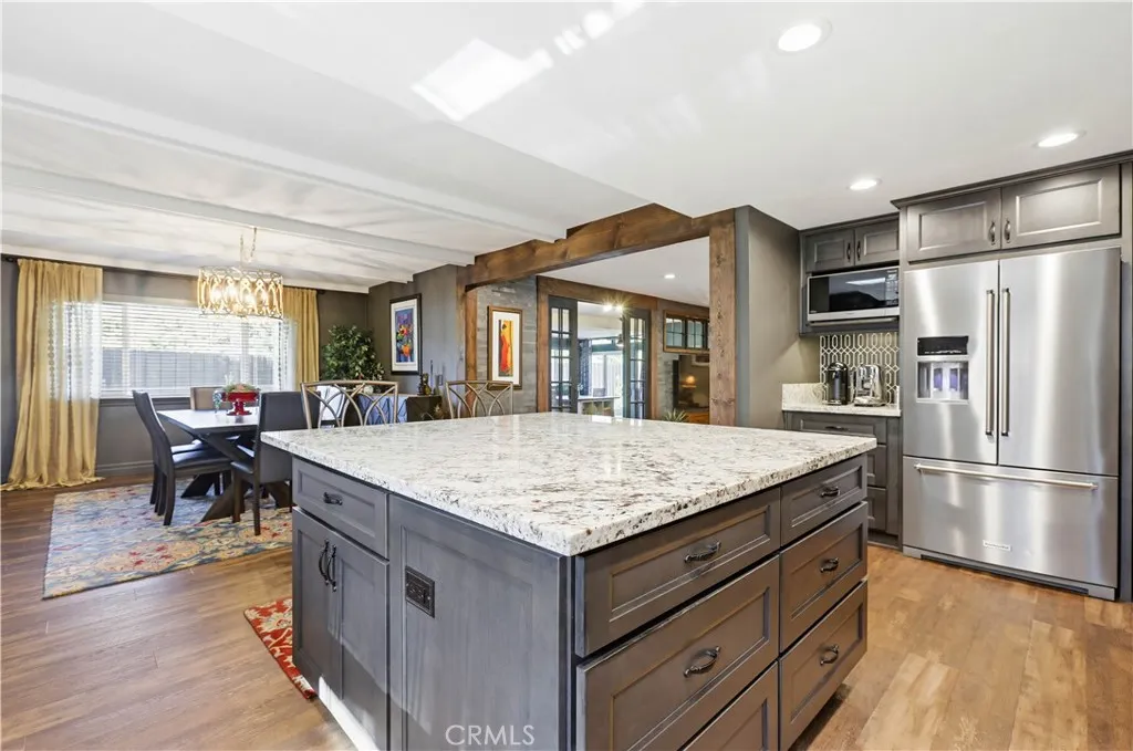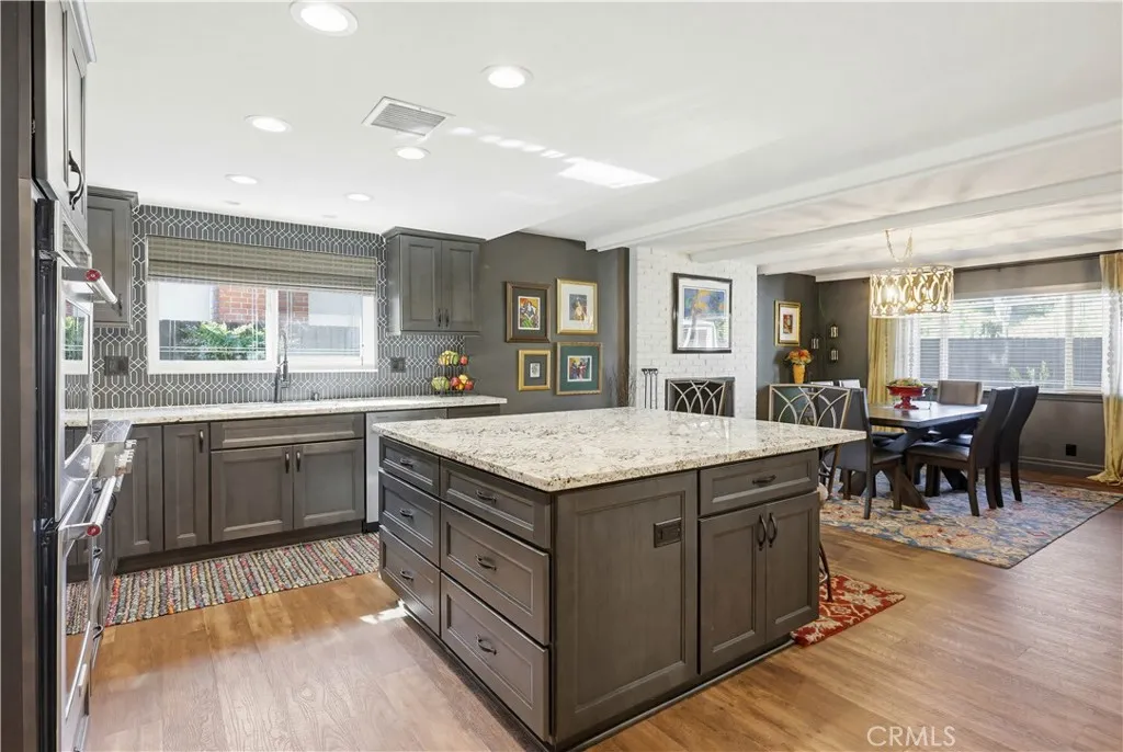 Highly desirable single level home, beautifully updated and improved inside and out, spacious and flexible floor plan, beautifully remodeled kitchen and baths, earthy color palette, and handsome features throughout. Superbly located on a beautiful tree-lined Cul-De-Sac street close to local parks and numerous hiking and biking trails nearby. The vibrant and highly manicured exterior features create a striking first impression. Step through the double door entry and soak in the gorgeous luxury vinyl plank floors and the spacious living room, a perfect space for gatherings with loved ones. Travel through to the expansive redesigned Kitchen and Dining Room with a welcoming brick fireplace, open beam ceilings, and custom lighting, an ideal environment for entertaining friends and family. The elegant, remodeled kitchen is a dream with gorgeous Granite countertops, upgraded cabinetry, double ovens, custom fully tiled backsplash, high-end stainless-steel appliances including professional grade gas range and double ovens, and a huge center kitchen island with breakfast bar. You will adore the expansive bonus multipurpose sunroom with hardwood flooring and filled with an abundance of natural light with sliders opening to the backyard spaces, perfect for rec room, family room, home office, teen hangout, and more! The primary suite is a private retreat with two closets and a beautifully updated primary bath with elegant Quartz-topped vanity and updated fixtures and faucets, framed vanity mirror, and step in shower. Two secondary bedrooms and a gorgeous guest bathroom mirroring the improvements in the primary bathroom which include a Quartz topped dual vanity, framed vanity mirrors, and elegant faucets and fixtures complete this well-designed floor plan. Additional improvements include newer HVAC and duct work, newer water heater, newer electrical panel, new fencing and gutters, new sunroom roof, and main sewer line improved. The fully fenced, private, outdoor spaces with mature trees and grassy lawns create a serene setting. Direct access two car garage with built-in storage, new garage door, and a large attic space for extra storage. Located in the desirable Beechwood School boundaries & FJUHSD! Excellent Fullerton location close to shopping, restaurants, local playing fields, hiking and biking, Coyote Hills Preserve, Hillcrest Park, Pinewood Stairs, Golfing, CSUF, St. Jude, Fullerton College, Fullerton Sports Complex, Fullerton Loop, 57 & 91 FWYS, & more!