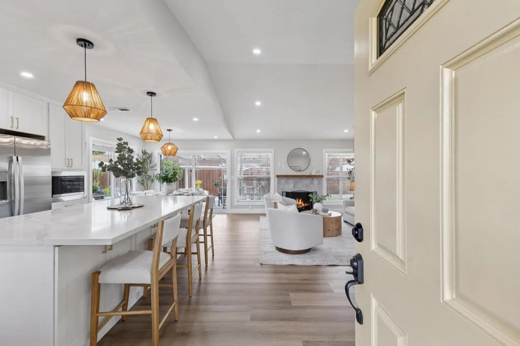 Experience contemporary living in this exquisitely designed home where the serenity of the outdoors seamlessly integrates with modern elegance. Greeted with tranquil ambiance and curated with premium, high-end finishes. Walk through a charming front yard entry into an open-concept floor plan with a spacious great room immersed in natural light and magnified by vaulted ceilings. A chef’s dream kitchen includes an oversized island with breakfast bar seating and overlooks the dining and living room for effortless entertaining. Spacious bedrooms and fully remodeled bathrooms exuding the utmost style and sophistication. Generous front, back and side yards where plant life is vast and varied with fruit trees, flowers and grasses illustrated in exquisite detail. Your very own park-like yard with paved walkways, manicured lawns, custom built fire pit and veggie gardens. Indoor outdoor living all blended together for a home that whisks you away with magic in every corner. Located in a private court with an expansive lot offering large side yard access for extra parking or future expansion. Prime location with easy access to I-880/84/92, BART, Coyote Hills, Alameda Creek Trail, Union Landing and major employers of the Bay Area.