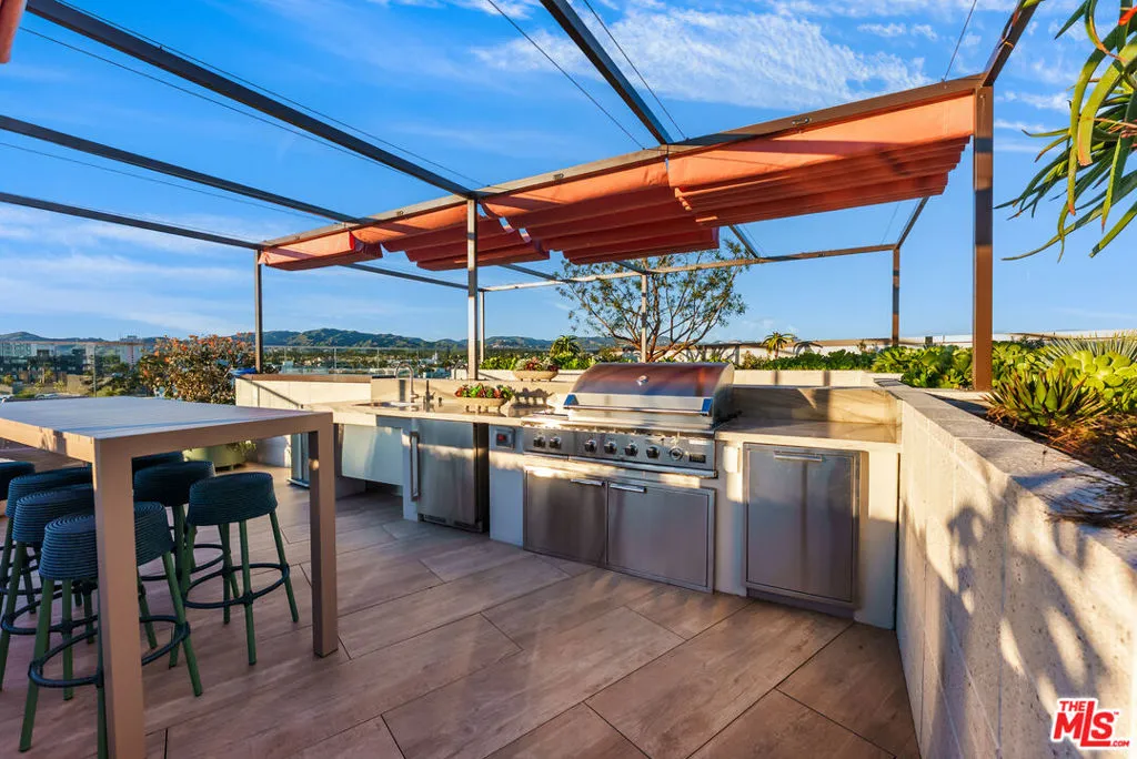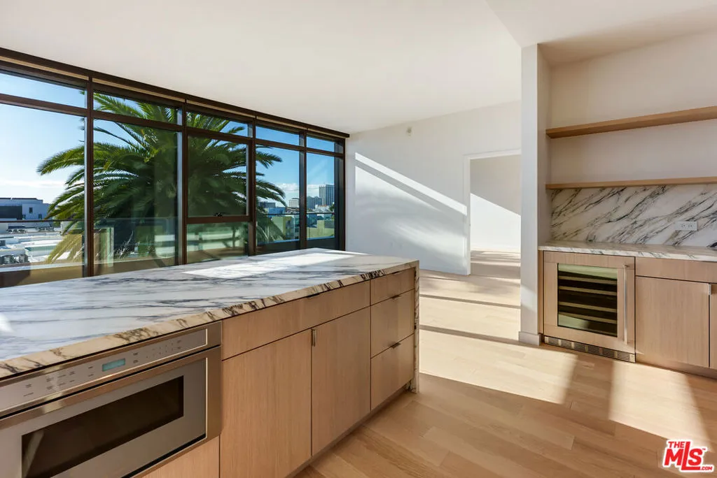 700 Broadway | Santa Monica’s Most Glamorous Penthouse Collection | Penthouse 715 at 700 Broadway is a rare corner three-bedroom, two-bath residence offering refined luxury, architectural volume, and an expansive private terrace with partial Pacific Ocean views. Soaring 10-foot ceilings, wide-plank flooring, and dramatic floor-to-ceiling glass create a light-filled sanctuary with seamless indoor-outdoor flow. The chef’s kitchen is a study in sophisticated design, appointed with Calacatta Monet marble countertops and full-height backsplash, custom oak cabinetry with integrated under-cabinet lighting, and a full suite of Thermador Smart Home appliances, including a wine refrigerator and microwave drawer. Spa-caliber bathrooms feature oak vanities, Cielo quartzite counters, Taj Mahal porcelain tile, and finely crafted Dornbracht fixtures, evoking a serene, resort-inspired atmosphere. Thoughtful upgrades include motorized roller shades, Nest thermostat, Lutron dimmable lighting, customizable Elfa closets, side-by-side LG washer and dryer, and secure keyless entry. Residents enjoy an unrivaled lifestyle with a 24/7 attended lobby boasting soaring double-height ceilings, on-site valet parking, and premier retail including Equinox Fitness Club and an upscale grocer. Amenities rival those of a private members’ club, featuring a lush 3/4 acre landscaped park with fire pits and outdoor dining, co-working lounge and library, entertainment lounge with bar and demonstration kitchen, indoor-outdoor fitness pavilion, speakeasy lounge with poker room, bowling alley, private screening room, pet spa, and a resort-style pool deck with 75-foot lap pool, hot tub, cold plunge, barrel saunas, reservable outdoor entertaining suites, and a rooftop dog run.