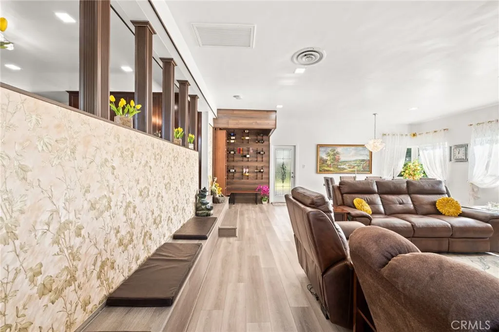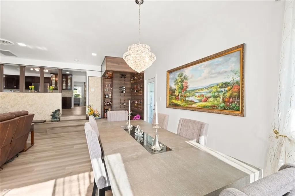 Welcome to this beautifully remodeled single-story home located in the highly sought-after city of Bradbury, where comfort, privacy, and community come together. This 4-bedroom, 2-bathroom residence offers a bright, open layout designed for modern family living and effortless entertaining. The home features a welcoming living room with a classic fireplace as well as a spacious family room with a second fireplace, creating multiple areas to gather and relax. The family room flows into a designated dining area and includes a built-in wine rack, making it ideal for family dinners and special occasions. Just off the family room, a generously sized covered patio provides the perfect space to enjoy the outdoors year-round, whether relaxing or entertaining. The updated kitchen is equipped with granite countertops, ample prep space, and a modern electric range, blending style with everyday functionality. Recent upgrades include updated electrical and plumbing systems and a newer air conditioning system, offering peace of mind and year-round comfort. Outside, the thoughtfully landscaped yard is surrounded by mature trees, offering a sense of tranquility and an abundance of local wildlife—creating a true retreat-like setting. Located in a quiet, family-friendly neighborhood close to top-rated schools, shopping, and dining, with convenient access to the 210 and 605 freeways, this Bradbury home delivers the perfect balance of serene living and everyday convenience. This is a must see!
