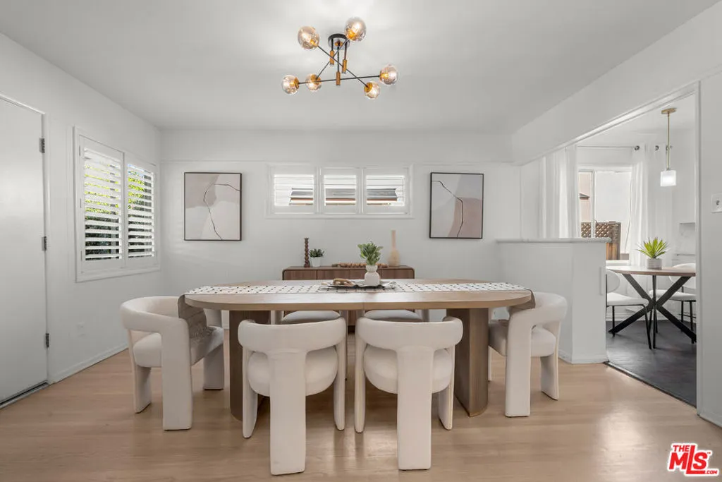 Welcome to this beautifully updated single-level Valley Glen home offering comfort, style, and effortless indoor-outdoor living. Set behind a gated front yard with generous parking, the home also features an attached garage and a thoughtfully designed floor plan with four bedrooms and three bathrooms. Inside, a spacious living room flows seamlessly into a separate dining area, while the eat-in kitchen has been updated with newer stainless steel appliances, refreshed finishes, and direct access to a dedicated laundry room. Remodeled bathrooms, freshly painted interiors, and refinished floors complete the interior. Sliding doors from the living room open to a large pergola-covered outdoor entertaining area. Beyond the pergola, the backyard features a gated pool and a separate Jacuzzi, creating a relaxed setting ideal for everyday enjoyment or hosting. The home may be offered furnished or unfurnished for added flexibility. Conveniently located near NoHo West, houses of worship, Valley College, and with easy access to the 170 and 101 freeways, this home offers turnkey living in a prime location.