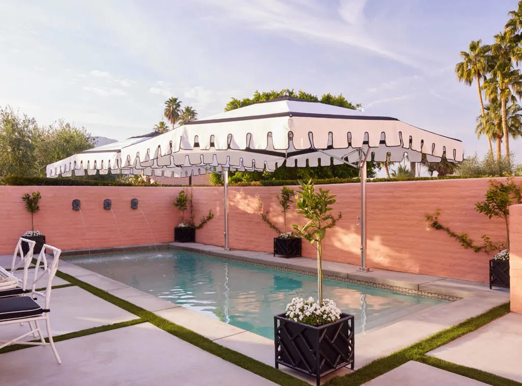 Experience five-star luxury in this exquisite residence located in prestigious and historically designated Marrakesh Country Club. Personally curated and owned by acclaimed designer Barclay Butera, this meticulously crafted John Elgin Woolf Hollywood Regency jewel offers an unparalleled indoor-outdoor lifestyle, ideal for those who value privacy, architectural pedigree, and the art of entertaining. Step through grand beveled glass entry doors into a dramatic living space with soaring ceilings, an original slump stone fireplace, and expansive 10-foot sliding glass walls that open to an extended terrace framed by a lush bougainvillea privacy hedge. Enjoy breathtaking views of Eisenhower Mountain and the golf course beyond. Ceramic tile flooring flows seamlessly throughout the living areas and rear terrace, enhancing the home’s elegant continuity. The chef’s kitchen features a Wolf range, Sub-Zero glass-front refrigerator, and a Sub-Zero 60-bottle wine cooler, complemented by new countertops and sink. Two beautifully remodeled bedroom suites reflect the iconic Marrakesh aesthetic with classic vanities, generous walk-in closets, and custom new lighting. Outside, a private oasis awaits with a saltwater lap pool accented by wall-mounted fountains, a new Pentair pool heater with wireless controls, and a striking mid-century modern canopy. Entertain effortlessly with an outdoor kitchen featuring a Lynx grill, Sub-Zero refrigerator, and new countertop, along with new Tucci cantilever umbrellas. Extensive recent upgrades include new lighting and fixtures throughout, new wallpaper, new drapery in the living room, guest suite, and baths, electric blackout blinds in the living room, new solid-core doors with decorative trim and updated hardware, new washer and dryer, and professionally redesigned landscaping at the pool and atrium with all plant containers included. Marrakesh residents enjoy club membership amenities including golf, tennis, pickleball, and fine dining at the newly remodeled clubhouse with breathtaking San Jacinto Mountain views. Featured on the cover of the January/February, 2026 issue of Luxe Interiors + Design magazine, this exceptional residence offers an extraordinary opportunity to own a true design-forward Marrakesh home.