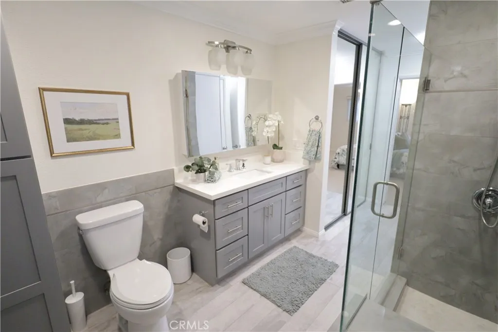 Fully Remodeled. Open Concept Kitchen. Luxurious Tiled Fully Remodeled Bathrooms. Primary Suite has Redesigned Oversized Step in Shower Plus Separate Soaking Bathtub. Central Air Conditioning, 1,199 Sq. Ft. ,2 Bedrooms 1.75 Baths , Smooth Ceilings, Newer Recessed LED Lighting, New Low Pile Carpet in the Bedrooms, New Paint, High Quality Wood Flooring in the Entry, Dining and Living Room Areas. Double Pane Windows and Sliding Doors, Move -In Ready. ( Some Furniture Can Remain ) Garden Villa Type Floorplan – Model Name is Villa Capri 2. Easy Access to the World Class Golf Course and Very Close to Clubhouse 4 ( Pool Hot Tub and all the Arts & Crafts- Wood Shop , Jewelry Making, Art and Ceramics ( Both Slip Casting and Wheel ) Studios, Sewing and Quilting Rooms , Photography Studio & Lapidary ( Stone Cutting ,Tumbling, & Glass Polishing ). 7 Clubhouses, 5 Swimming Pools, Pickle Ball, Tennis, Bocce, Ping Pong, 2 Computer centers ( PC and MAC )Free Local Bus Transportation, Welcome To Laguna Woods Village less than 8 miles to the Beautiful Blue Pacific Ocean in Laguna Beach.