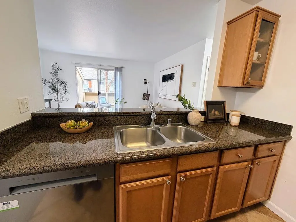 Beautifully updated and sun filled top floor, corner 2 bed condo in Baywood Villas community. The best value in Fremont! It offers a perfect blend of comfort and convenience. With a spacious layout, the unit features new carpets, and a balcony that gets plenty of sunlight. The kitchen has granite countertops, stainless steel appliances, and wood cabinetry. Both bedrooms have mirror closet doors. Residents enjoy a range of amenities, including a pool, spa, clubhouse, fitness center, and a childrens play area, all for a low HOA fee that also covers water and garbage. Located centrally in Fremont: near BART, major freeways and Dumbarton bridge for easy commute. This home is also close to shopping centers, parks, and Washington and Kaiser Hospital. With one dedicated parking space and plenty of guest spots, this move-in-ready condo offers incredible value and is the perfect place to call home in Fremont.