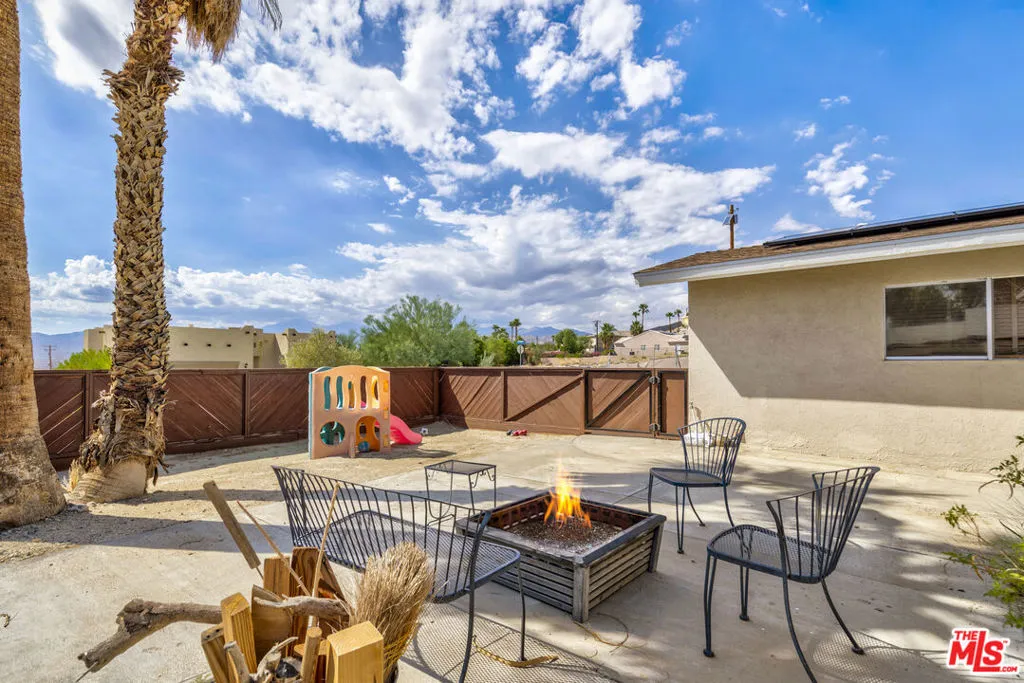 Welcome to this beautiful, spacious home with large size bedrooms, full kitchen, remodeled throughout, and an amazing swimming pool! Enjoy sunsets over the San Jacinto mountains from the front patio, or entertain guests at the back patio by the BBQ, pool, and the private movie/media room. Sitting on a quiet street, walking distance to some nice trails up into the desert hills; a perfect place to call home either permanently or when you need to get away. Pool was built in 2021, completely permitted. The pool is gas heated and features a fountain system which can be turned on or off. Kids love running through the fountains! The house features a side yard with separate entrance to the “guest suite”. The house comes completely furnished with stainless steel appliances- refrigerator, dishwasher, stove, microwave, and more. Central AC and heat keeps the home warm in the winter and cool in the summer. The garage features tons of storage and is well maintained. More storage sheds are in the backyard by the pool house. A fully paid for security system with 4 different cameras around the house provide that extra security protection. 18 solar panels help pay the bills, the solar system is completely paid for and comes to the new owner. A well maintained and landscaped front and back yards are watered by sprinkler systems, as well as exterior lighting to make the scenes bright. The house is currently being used as a short term vacation rental (Airbnb, Vrbo) via permit. This permit is 100% transferrable to the new owner, but must be done by the new owner’s effort. Current owner will assist in the transfer as possible. The house is booked until the end of April, any reservations may be transferred to the new owners, or cancelled. Welcome to your new home, or investment, either way this place is not to be missed!