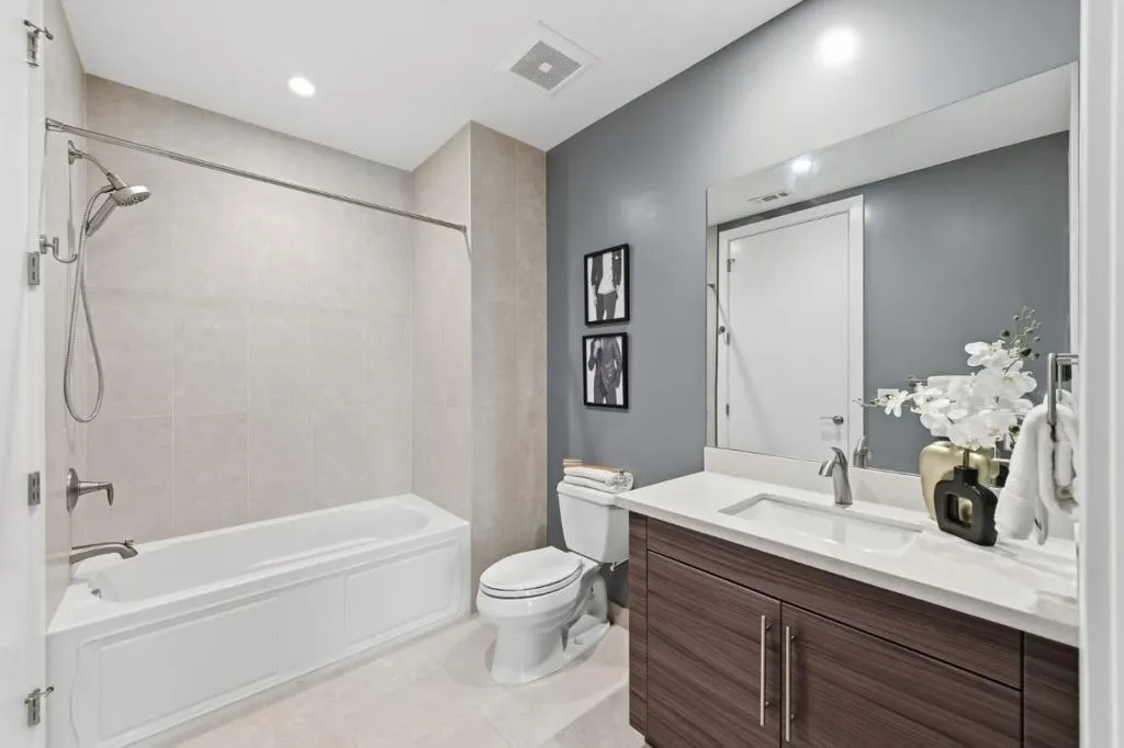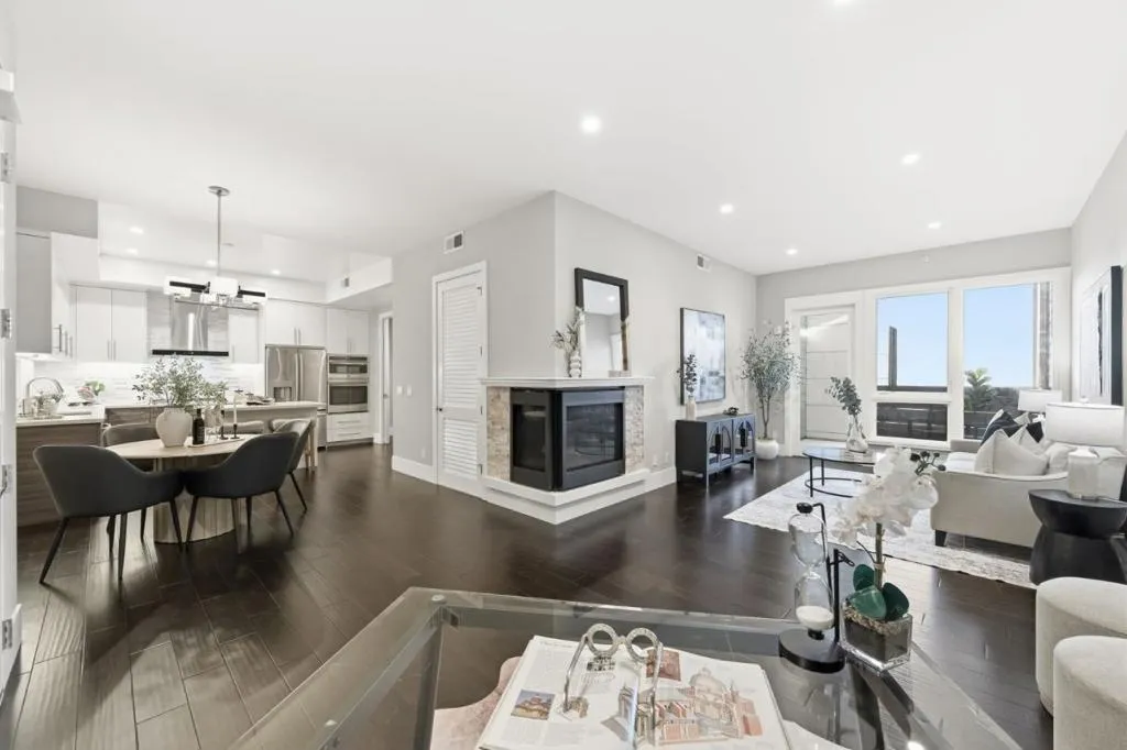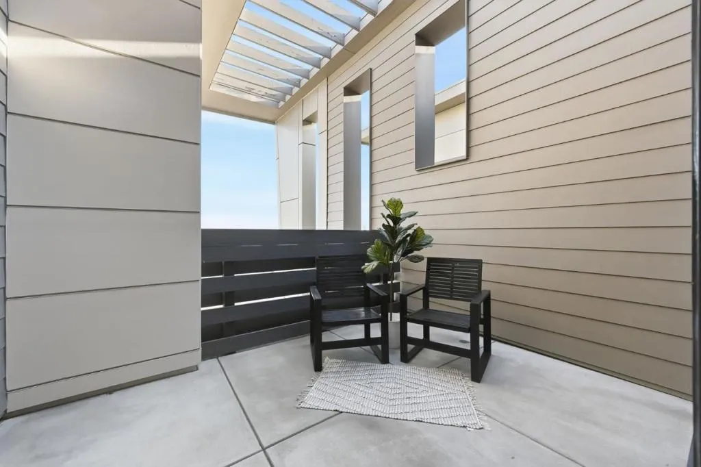 Rarely available oversized 2-bdrm condo, larger than many 3 bdrm units in building. This beautifully updated top-floor residence offers an expansive living area w/ ample room for a dedicated home office, thoughtfully set apart from the main entertaining spaces. Set in a newer, meticulously maintained building, this home blends comfort, style, & convenience. Soaring ceilings & abundant natural light enhance the open-concept layout, ideal for both everyday living & entertaining. The gourmet kitchen is a chef’s dream, featuring stainless appliances, quartz countertops, & custom cabinetry. The spacious living area flows seamlessly to a private patio, perfect for relaxing or dining al fresco. The generous primary suite includes a nicely finished walk-in closet & spa-inspired bath. The 2nd bdrm (en-suite) offers flexibility for guests, a home office, or family needs. Additional highlights include in-unit walk-in laundry room, a large storage area off the kitchen, central A/C, 2 assigned parking spaces, a public EV charger, & low HOA dues. Residents also enjoy a communal BBQ area, ideal for casual gatherings and entertaining. Ideally located in desirable Belmont, close to top-rated schools (buyer to verify), Caltrain, major commuter routes/tech shuttles, & vibrant shopping and dining.