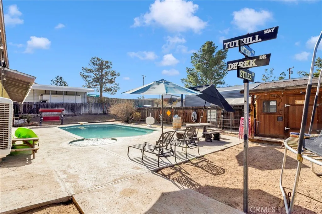 Welcome to the beautiful Desert Knolls area of Apple Valley! This spacious 4-bedroom, 2-bathroom home features an open floor plan, an open kitchen with granite countertops, stainless steel appliances, and flows seamlessly into the main living area, where a charming brick fireplace adds warmth and character. Enjoy the convenience of a fully finished and insulated attached garage, PLUS A DETACHED 30×25 garage with two roll-up doors, an attached carport, and a 220 plug, making it ideal for a workshop, toys, or extra storage. Horse lovers will appreciate the ample space with the yard being fully fenced and crossed fenced. Your private oasis featuring an in-ground pool and Jacuzzi, perfect for relaxing or hosting gatherings. This one won’t last long!