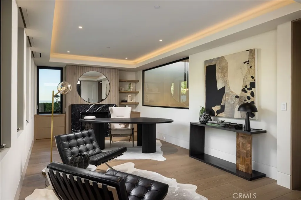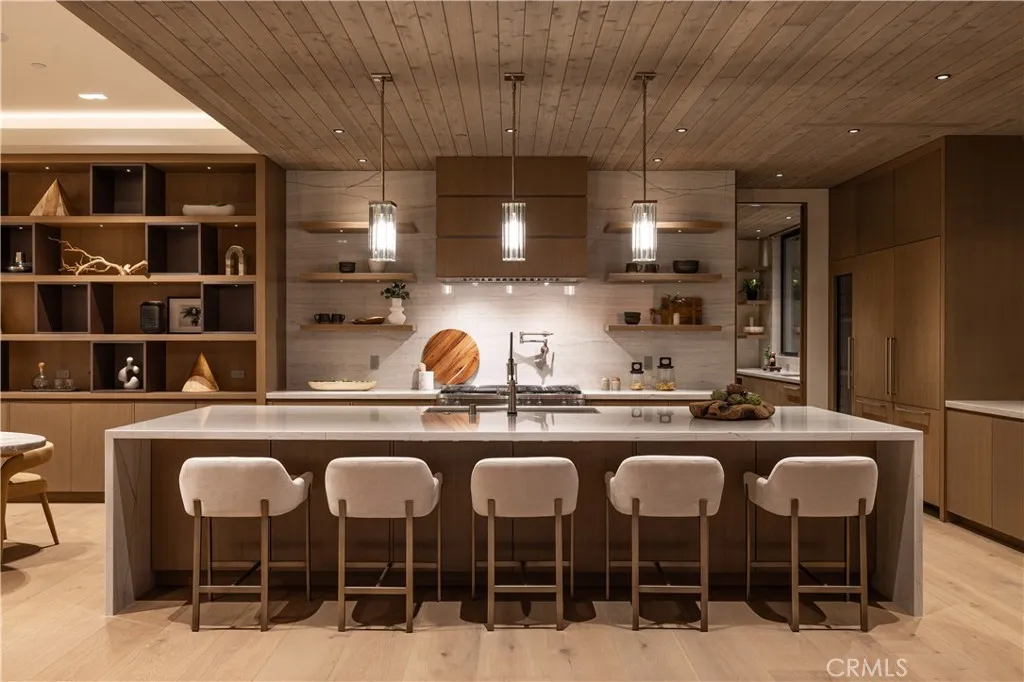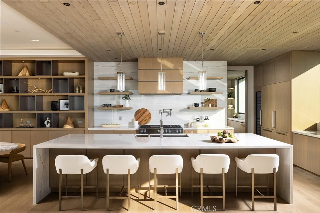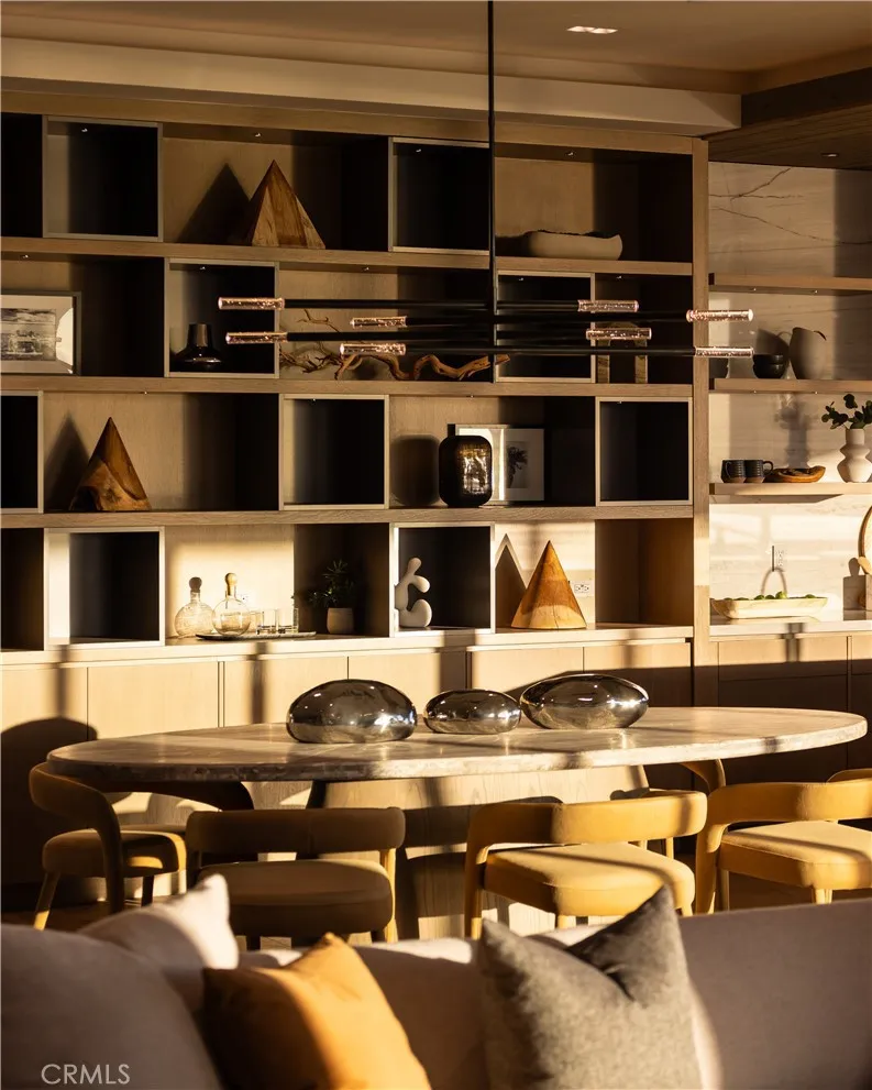 Saltaire House by Casa Arte Group: set above the breaking waves of Monarch Beach at 32711 Caribbean Drive, this newly completed, single-level estate embodies sublime, coastal elegance. Encompassing 5,188-SF, the residence by a boutique luxury home developer offers 5-beds and 6-baths, executed with artistry and sophistication. The great room opens to sweeping ocean views through expansive pocketing Fleetwood doors, dissolving the line between the refined interior and salt air-tinged exterior. A stone-wrapped fireplace, 10 ‘+ ceilings, and a curated palette of Santa Barbara smooth stucco, white oak, and red cedar create an easygoing aura throughout. Just outside, a firepit, and built-in banquette seating provide the setting for evening sunset views. The kitchen space is both sculptural and functional, featuring custom European-style cabinetry, quartzite surfaces, and a Miele appliance suite, complemented by a butler’s pantry and prep kitchen. Adjacent dining and lounge spaces are designed for intimate gatherings or large-scale entertaining, elevated by a 234-bottle glass wine display. An interior courtyard forms a sanctuary within the residence, where a sparkling sunken pool and spa are framed by hedges for complete tranquility. Pocketing doors throughout open directly to the courtyard, sustaining the breezy, open nature of the home. The primary suite is an idyllic retreat with ocean views, a grounding fireplace, and direct access to the main entertaining decks. The spa bath features travertine slab walls, radiant heated floors, a soaking tub, and dual vanities. Additional ensuite bedrooms each open to private garden spaces, while wellness amenities include a gym, spa bath, and 4-person sauna overlooking the pool. Sustainability is integral, with a 15kW solar array, battery storage, high-efficiency HVAC systems, and smart-home integration including networking, Savant lighting, audio, and security systems. A 6-car garage with EV charging completes the offering. Within walking distance to iconic local resorts including the Ritz Carlton and Waldorf Astoria, with golf courses, miles of hiking and biking trails nearby. Minutes from Mussel Cove and members-only Monarch Bay Club.