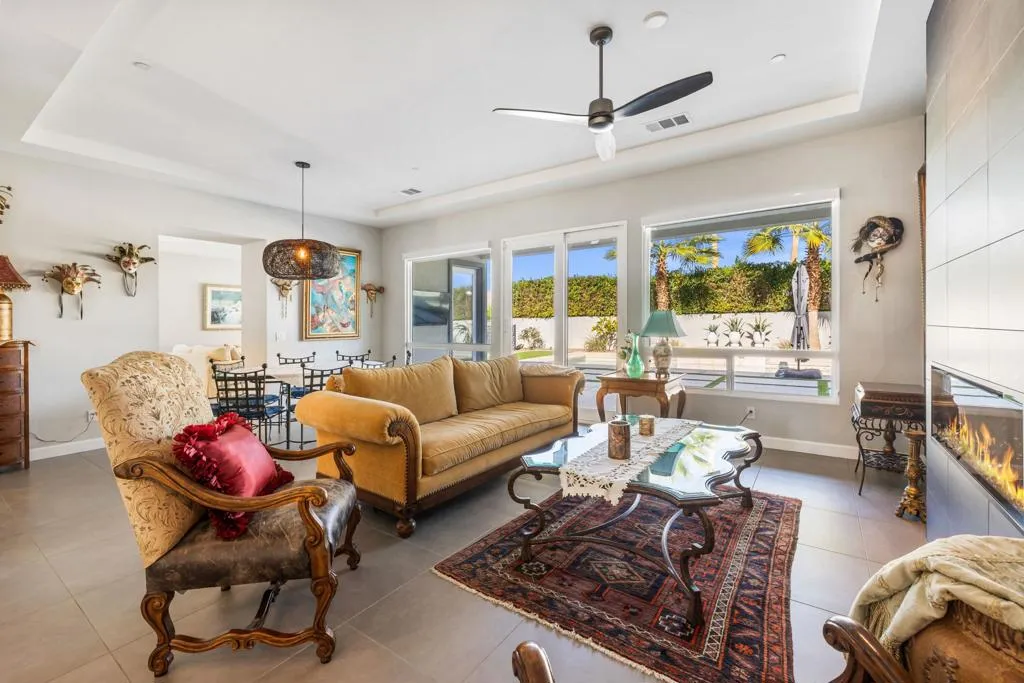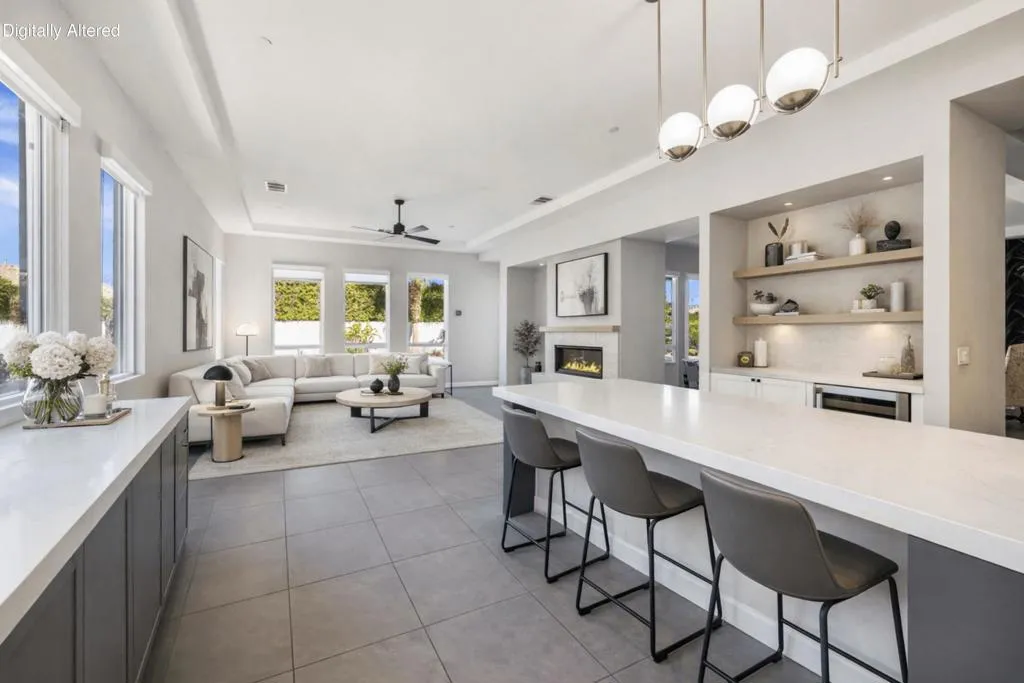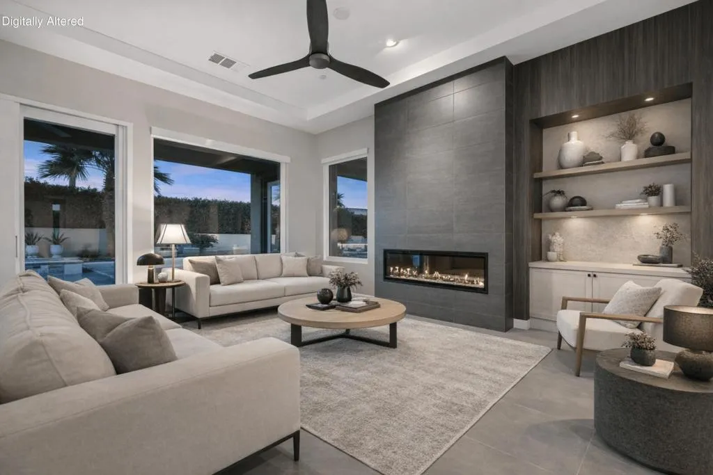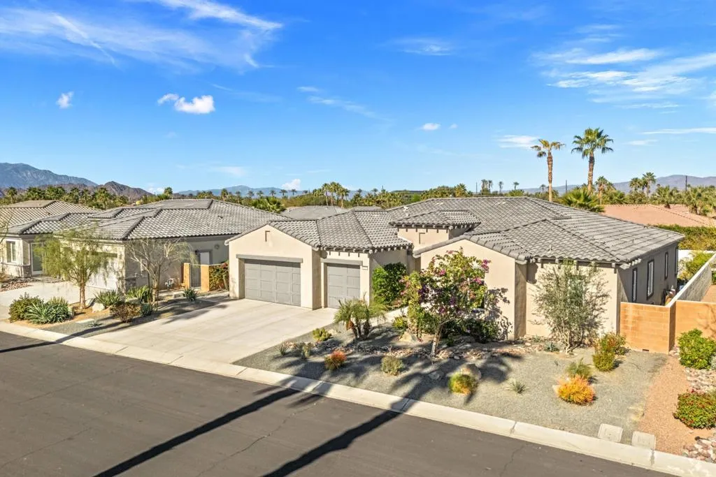81890 Thoroughbred Trail | Rancho Santana | South La QuintaSituated within the sought-after Rancho Santana community, 81890 Thoroughbred Trail presents a compelling opportunity to own a newer-construction, contemporary home in one of La Quinta’s most desirable residential settings. Completed in 2021, this later phase is especially prized for its transitional design aesthetic, contemporary features and appliances, wide and well-maintained streets, mature landscaping, and overall sense of space, distinguishing itself from earlier phases of the community. The residence spans 2,912 sq ft and offers 3 bedrooms and 4 bathrooms, featuring an open-concept layout designed for today’s buyer and the desert lifestyle. Contemporary finishes, a seamless kitchen-to-living connection, and a spacious primary suite create a home that feels current, comfortable, and easy to live in. Each secondary bedroom is en suite, providing privacy and flexibility for family or guests, while the third bedroom offers its own private entrance, ideal for visitors or extended stays. The contrast between clean white kitchen amenities, large-format darker tile flooring, and the fireplace detail adds visual interest and broad decor appeal. Owned Solar is another Asset with underestimated utility and long-term value.Set on a generous 10,000+ sq ft lot, the spacious backyard offers ample room for relaxed desert poolside living and entertaining, while capturing beautiful westerly San Jacinto Mountain views. Rancho Santana residents enjoy community parks, walking paths, and gathering areas, further enhancing the neighborhood’s appeal.The location is complemented by proximity to many of the desert’s finest lifestyle and sporting destinations, including premier private golf clubs, the Indian Wells Tennis Garden, Desert International Horse Park, Thermal Club, Jacqueline Cochran Regional Airport, polo grounds, pickleball facilities, and the Coachella and Stagecoach music festival venues. Nearby Old Town La Quinta and the famed La Quinta Resort offer additional options for dining, shopping, and local exploration.Whether seeking a year-round residence or a seasonal retreat, this home and community appeal to a wide range of buyers. Opportunities to own in this newer phase of Rancho Santana are limited–this is one not to be missed.Select images include virtual staging to illustrate contemporary furnishing option