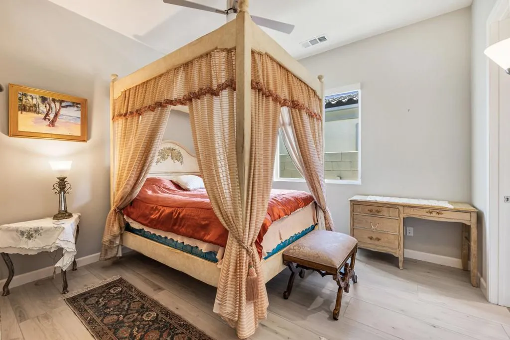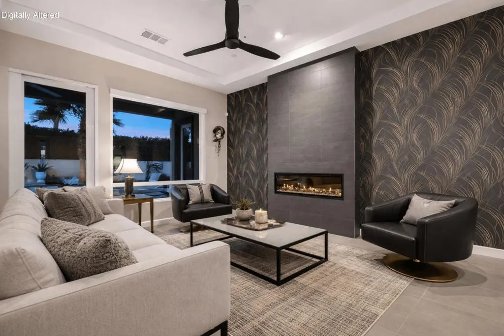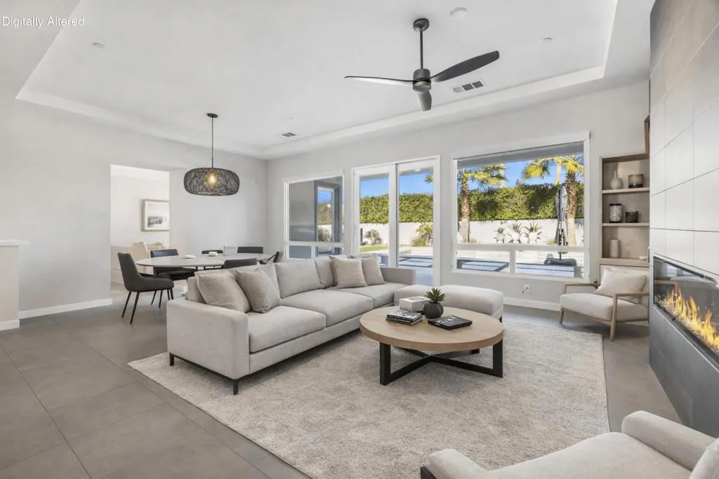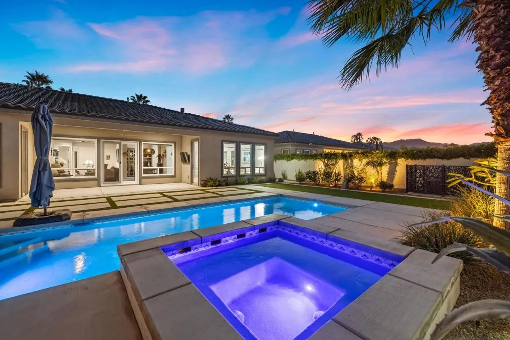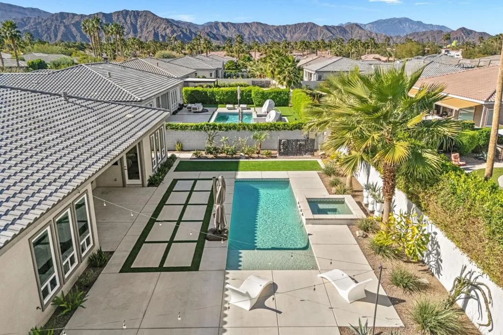 81890 Thoroughbred Trail | Rancho Santana | South La QuintaSituated within the sought-after Rancho Santana community, 81890 Thoroughbred Trail presents a compelling opportunity to own a newer-construction, contemporary home in one of La Quinta’s most desirable residential settings. Completed in 2021, this later phase is especially prized for its transitional design aesthetic, contemporary features and appliances, wide and well-maintained streets, mature landscaping, and overall sense of space, distinguishing itself from earlier phases of the community. The residence spans 2,912 sq ft and offers 3 bedrooms and 4 bathrooms, featuring an open-concept layout designed for today’s buyer and the desert lifestyle. Contemporary finishes, a seamless kitchen-to-living connection, and a spacious primary suite create a home that feels current, comfortable, and easy to live in. Each secondary bedroom is en suite, providing privacy and flexibility for family or guests, while the third bedroom offers its own private entrance, ideal for visitors or extended stays. The contrast between clean white kitchen amenities, large-format darker tile flooring, and the fireplace detail adds visual interest and broad decor appeal. Owned Solar is another Asset with underestimated utility and long-term value.Set on a generous 10,000+ sq ft lot, the spacious backyard offers ample room for relaxed desert poolside living and entertaining, while capturing beautiful westerly San Jacinto Mountain views. Rancho Santana residents enjoy community parks, walking paths, and gathering areas, further enhancing the neighborhood’s appeal.The location is complemented by proximity to many of the desert’s finest lifestyle and sporting destinations, including premier private golf clubs, the Indian Wells Tennis Garden, Desert International Horse Park, Thermal Club, Jacqueline Cochran Regional Airport, polo grounds, pickleball facilities, and the Coachella and Stagecoach music festival venues. Nearby Old Town La Quinta and the famed La Quinta Resort offer additional options for dining, shopping, and local exploration.Whether seeking a year-round residence or a seasonal retreat, this home and community appeal to a wide range of buyers. Opportunities to own in this newer phase of Rancho Santana are limited–this is one not to be missed.Select images include virtual staging to illustrate contemporary furnishing option