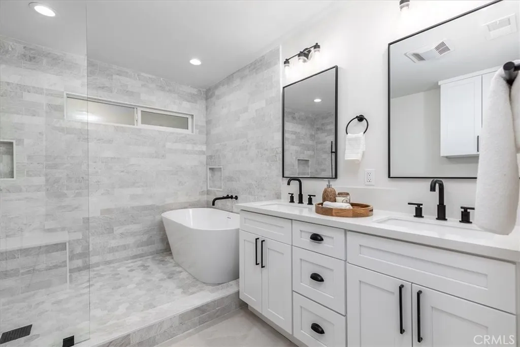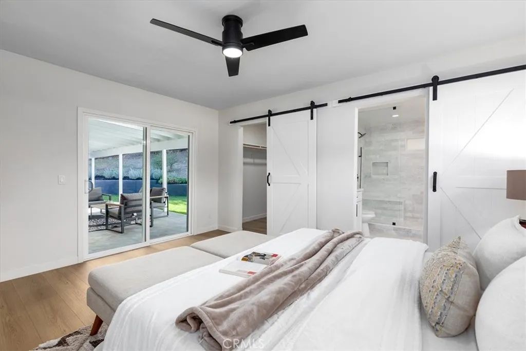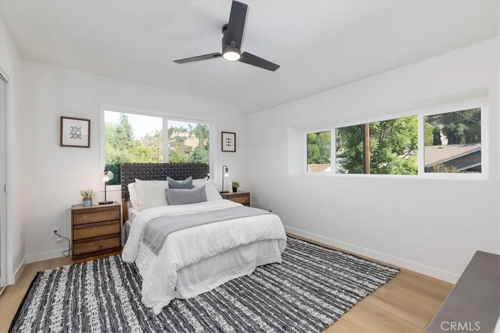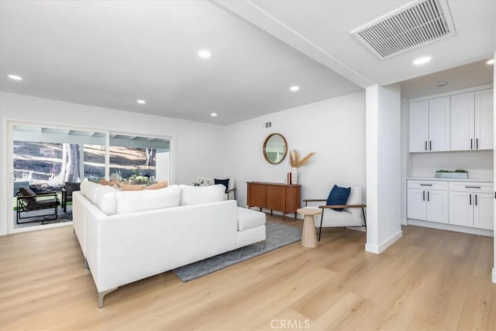 Tranquility awaits at this incredibly soulful retreat in one of the most coveted pockets of Woodland Hills. Set amongst an abundance of mature trees and situated on a expansive homesite, this stunning residence makes you feel like you’re a world away from the city, while conveniently located just a short distance to all of the fantastic shops, restaurants, and markets that Woodland Hills and nearby Calabasas have to offer. Step through the charming entry to find open and airy spaces, all of which are impeccably designed and exude the utmost attention to detail. The dining room and spacious family room have sliding doors that open to the serene outdoors. The light-filled formal dining room flows seamlessly into the kitchen for effortless entertaining. The impressive kitchen is a Chef’s dream and is well-appointed with stainless steel appliances – ample cabinet and countertop space, tons of natural light. An adjoining laundry room provides extra storage and garage access. Three generously sized guest bedrooms offer leafy views and share a beautifully designed bathroom with new tile in the shower and marble tile flooring. The home’s primary bedroom is simply heavenly, featuring ample closet space, and a spa inspired en-suite bathroom with a marble tiled shower that is bathed in light. Sliding glass doors lead you to the absolutely magical outdoors. Here you’ll discover a sprawling yard with multiple areas to lounge and dine, and fire pit, all while experiencing total privacy and looking out to a canopy of trees in every direction. The dreamy outdoor spaces provide the perfect setting for weekend brunches and dinner parties with family and friends. Additional features of the property include new windows, new roof and a new water heater. This is Southern California living at its best.