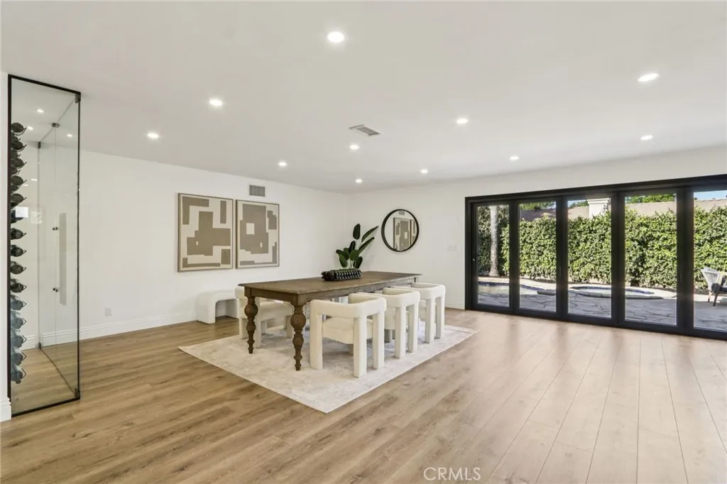 A house located in one of the most coveted areas in woodland hills. Perfectly positioned just adjacent to walnut acres. This property offers striking curb appeal perched on a gorgeous, landscaped corner lot. The street is tranquil and quiet. Features include 4 bedrooms 3 luxurious fully updated bathrooms with custom finishes throughout. From the moment you step into the home you’re welcomed by soaring cathedral ceilings and an open breathtaking floor plan. Expansive all glass folding doors seamlessly frame views of the resort style pool and spa. The gourmet kitchen is the heart of the home, featuring brand-new high-end appliances; 2 separate sinks including a dedicated island sink for special occasions, and custom cabinetry. Elegant premium laminate flooring runs throughout the living spaces.