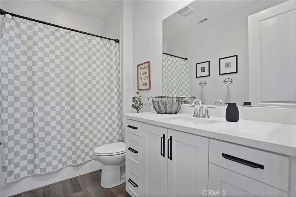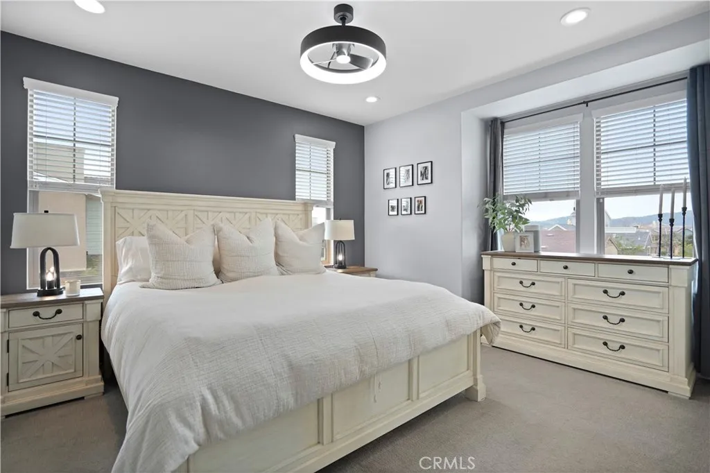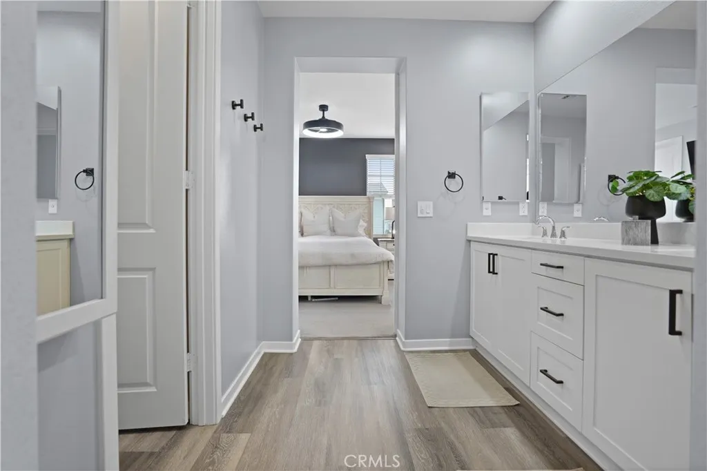 In the heart of Esencia Village, this wonderful Modern Farmhouse is located steps from the best amenities RMV offers and located across from Esencia Park. Versatile floorplan with a 24′ x 12′ 4th bedroom/bonus room that makes a great inlaw suite, office or playroom. Full bath with step-in shower is located on this level as well as a private patio off this room. Boasting several outdoor spaces including a generous yard with paver hardscape, mature vines and gate to oversized front porch plus a second floor large view deck. Some of the wonderful upgrades include plank LVP waterproof floors, white shaker cabinetry, white quartz countertops, marble subway tile backsplash, and 2 huge walk in pantries. Beautiful glass pendants gracefully hang in the kitchen highlighting the all stainless steel GE appliances including oven, convection microwave, dishwasher, deep sink, 5 burner cooktop and refrigerator. Generous laundry room includes utility sink, long folding counter and 2nd walk-in pantry with electrical for a second fridge or limitless storage. Step outside the dining room onto the generous view deck with motorized sun shades for morning coffee or dining al fresco. The 2 secondary bedrooms both with ceiling fans and one with shiplap wall share a full bath with tub/shower with quartz walls. The primary suite is complete with walk-in closet with custom closet built-ins, ceiling fan, recessed lights and beautiful neighborhood views. Separated by the custom barn door, the spa primary bath has been appointed with upgraded tile floors, white quartz counters, oversized walk-in shower with 2 x 2 slate look tile floor and quartz shower walls. Attached 2 car garage with epoxy floors and overhead racks complete this wonderful home! Enjoy the RMV resort lifestyle with Hilltop Club Gym, Pool and Jacuzzi, Arcade, Bar and Bocce Courts just steps to the left of the home and North Plunge with resort pool, tennis courts, pickle ball courts and sports park steps to the right of the home. Also a short bike ride to Esencia K-8 School. RMV Resort living includes access to 7 resort pools, three workout gyms, 2 pool bars, numerous parks and walking paths. Welcome Home!