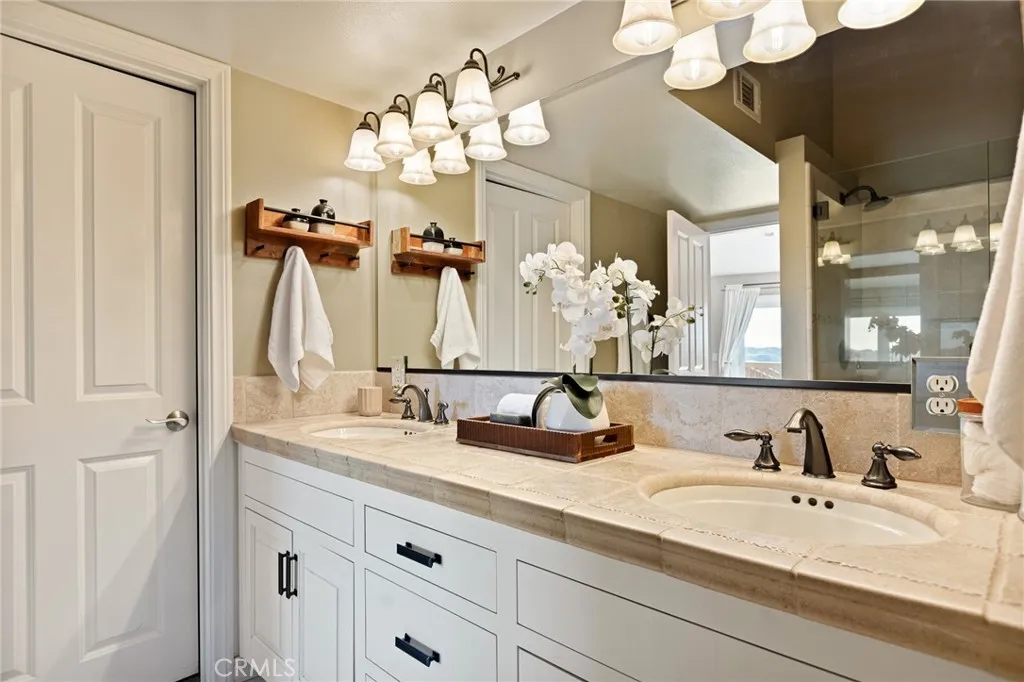 Spanning over 3,700 square feet, this exceptional 4-bedroom, 4-bathroom home is defined by dramatic architecture and breathtaking canyon views. The main level features a stunning great room with vaulted ceilings, exposed beam detail, a brick fireplace, and expansive windows that frame the surrounding hills. Sliding doors open to a massive Trex deck with multiple seating areas—ideal for entertaining or simply enjoying the sweeping views. The open-concept layout includes a dining area and a beautifully designed kitchen with a large center island and built-in banquette seating. The primary suite is a true retreat, offering vaulted ceilings, serene views, direct access to the rear deck, and a spacious en-suite bath with separate soaking tub and shower, dual vanities, and a walk-in closet. Two additional bedrooms and two bathrooms complete the main level. The lower level offers a private apartment with a sitting area, eat-in kitchen, bathroom, and separate bedroom with additional living space. Accessible from both the interior of the home and a private exterior entrance, this space also enjoys incredible canyon views—ideal for guests, extended family, or multigenerational living. Situated on a large lot with room for RV or boat parking.