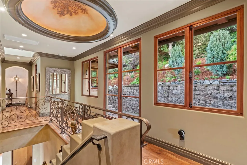 Available for the first time ever, 4 Yellow Brick Road is a custom Italianate estate tucked away on a private cul-de-sac shared by only seven homes. Defined by timeless architecture, exceptional craftsmanship, and sweeping coastal views, the residence stands as a true original. Designed by renowned architect Doug Leach, the home has been featured in magazines and commercials and has influenced multiple South Bay residences since its completion in 2005. Built as a forever home, the owners worked closely with the architect to create a floor plan that seamlessly balances multigenerational living with elevated entertaining. Spanning 6,468 square feet on an over half-acre lot, the home is thoughtfully oriented to capture 180-degree ocean and city views from nearly every room, creating a constant connection to its elevated setting. Ideally located within walking distance of the Palos Verdes Golf and Tennis Club and just minutes from Riviera Village and Redondo Beach, the property also offers convenient access to acclaimed restaurants and scenic coastal trails. The residence offers five bedrooms plus a library that functions as a sixth bedroom, along with seven bathrooms and an impressive collection of resort-style amenities. A Skip Phillips designed infinity pool and spa anchor the outdoor spaces, surrounded by lush gardens and multiple private areas for entertaining. Inside, a home theater with a 110-inch screen, two-stop elevator, and temperature-controlled wine cellar provide comfort and convenience. The chef’s kitchen features custom French Traditions cabinetry, Miele double ovens, a full-size Sub-Zero refrigerator, warming drawers, a built-in espresso machine, and an expansive butler’s pantry ideal for hosting memorable gatherings. Upstairs, the primary suite serves as a private retreat with double walk-in closets, a spa-like his-and-hers bathroom finished in honey onyx marble, and a jetted tub overlooking both Downtown Los Angeles and the Queen’s Necklace. Hand-selected finishes throughout include lighting by Fine Art, Belgard stone retaining walls, an Olympic stone pool deck, imported Italian tile and brick, walnut hardwood flooring, natural limestone, ceiling beams sourced from a historic French barn, and gates accented with wood imported from India. Rare and emotionally compelling, this is a home that must be experienced to be truly appreciated. An opportunity that comes along once in a lifetime.