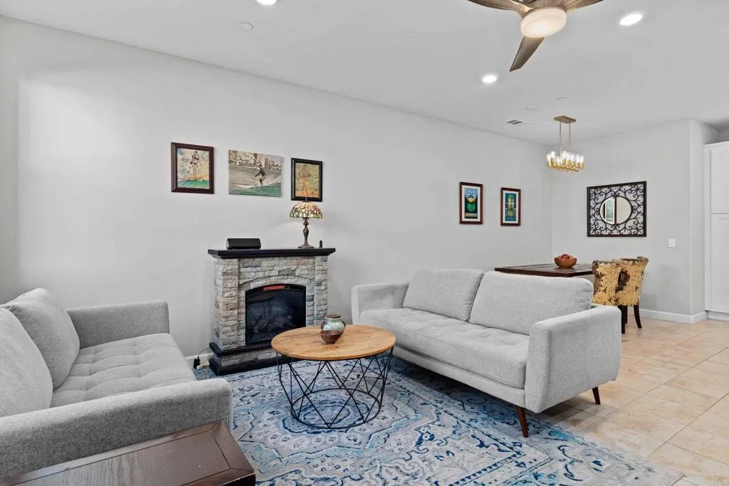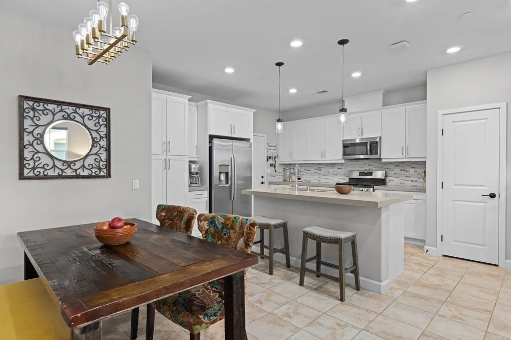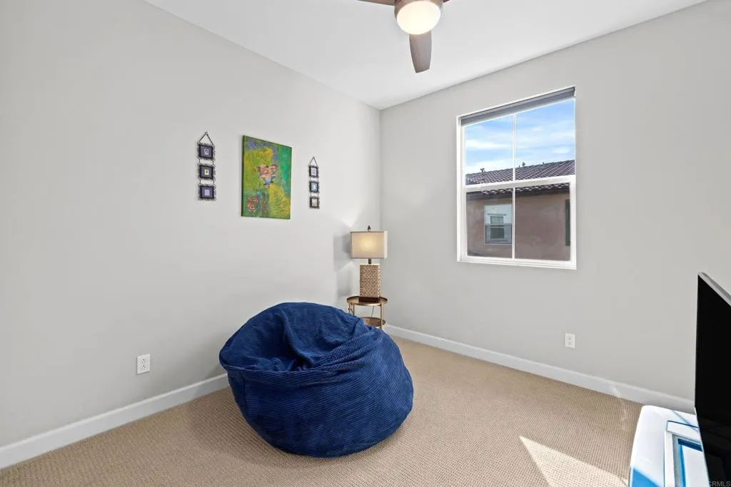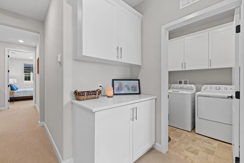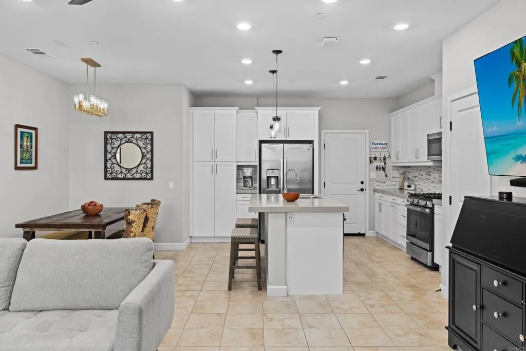 Located in the heart of Vista, within the desirable gated community of The Peak, this 3 bedroom, 2.5 bath beautifully maintained smart home offers a perfect blend of comfort, style, and location – and owned solar! The high ceilings and a bright, open floor plan create an inviting living space. The modern white kitchen features quartz countertops, tile backsplash, stainless steel appliances (fridge conveys), ample storage, and flows seamlessly into the main living and dining areas—ideal for both daily living and entertaining. The spacious bedrooms—including the primary suite—and upgraded bathrooms are conveniently located near the laundry room (washer and dryer convey). Enjoy outdoor living on the large front paver patio with mountain views. Additional highlights include whole house fan, OWNED solar (8 panels, 3.2 Kw system), a/c, ceiling fans throughout, and a prime location within the community. Residents enjoy resort-style amenities including a community pool, spa, fire pits, BBQ areas and playground, all within this well-maintained gated neighborhood. 2 car attached garage. Living room window coverings do not convey. Great value for this nearly new–built in 2020–home! Dimensions & sq footage are approximate, per builder & assessor’s record. All MLS and marketing info is approximate and not guaranteed. OWNED solar (8 panels, 3.2 Kw system) covers most electrical, electricity cost is only about $50/month extra.