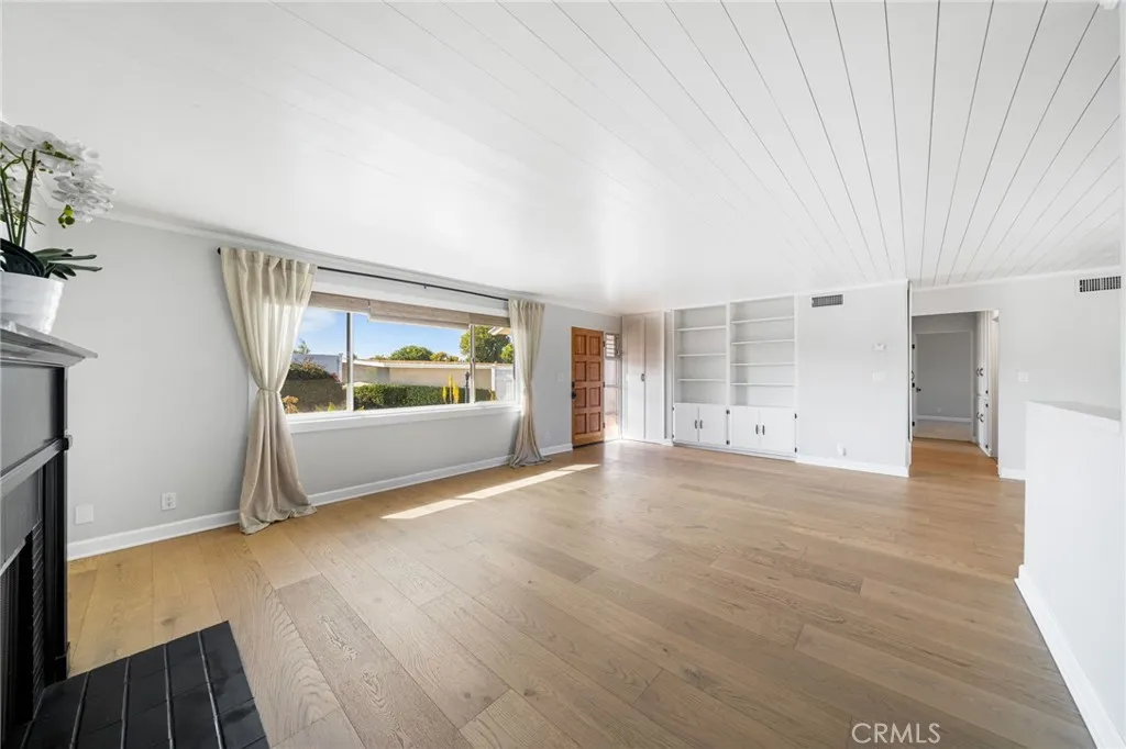 Welcome Home to this beautifully remodeled mid-century modern 2 Bed + Den ( glass rm), 2 Bath home in the highly sought-after coastal 55+ community of Bay Cliff Village. Quietly perched atop the hillside, this home boasts a desirable single-level, open floor plan with large windows that welcome an abundance of natural light. Upon entry, you will be greeted by the sunlit white oak flooring, which seamlessly blends the large, open living room with the dining area. The living room is anchored by a quintessential mid-century modern brick fireplace. In keeping with the 1962 heritage, you will find charm, organic and geometric shapes, and a diverse range of materials used throughout the home. The chef’s galley style kitchen fully embodies actual mid century modern design with custom maple cabinetry, quartz counters, a full tile backsplash, slate hexagon tile floor, Cafe Series appliances all pulled together by the unique charm of a authentic copper oversized sink resting beneath a large window with views for miles. The guest bath feature marble hexagon tile, a new vanity, and a penny tile walk-in shower. The large primary suite boasts plenty of natural sunlight. Your en-suite bathroom has been elegantly remodeled to match the guest bath. The second bedroom has its own private sliding door, joining it to a large sunroom. Use as a serene retreat, home office, or even an art studio. Fully enclosed by floor-to-ceiling windows with a second sliding door that leads to the private patio. The large private patio is surrounded by lush, mature landscaping, boasting views of the Shorecliff golf course, the Saddleback Mountains, and, in the evening, city lights. A perfect environment for unwinding or entertaining. Additionally, there is a large, one-car detached garage and a designated parking spot located steps from the front door. Thoughtful upgrades include PEX plumbing, energy-efficient windows, new flooring, and new energy-efficient appliances. Bay Cliff Village is a community featuring picturesque walkways, beautiful gardens, a clubhouse, and several seating areas offering breathtaking panoramic ocean views, all of which contribute to a vibrant community lifestyle. Conveniently located in the center of it all, while still maintaining the integrity of this quiet community. Just a short stroll to the beach, PCH, a few miles to downtown San Clemente, Outlets at San Clemente, and Dana Point Harbor, easy access to the 5 freeway & public transportation.