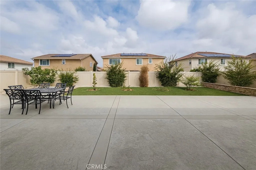 Welcome to 26414 Valencia Way. Modern Comfort in Citrus Trails. Built in 2021, this modern two-story home offers 5 bedrooms, 3 bathrooms, and a 3-car tandem garage across 3,031 sq. ft. of living space, set on a generous 7,753 sqft flat lot. Designed with both function and style in mind, the open floor plan provides a seamless flow. Beautifully maintained and thoughtfully upgraded, the home features: Paid solar panels, Powerwall energy storage, Tesla charger in the garage for efficient, sustainable living. Landscaping with artificial turf in both the front and back yards, complemented by a spacious cement patio area. A charming collection of fruit trees: fig, apple, grape, melon, and lemon, perfect for family enjoyment outdoors. Expanded driveway with added concrete. The first floor features waterproof laminate flooring, while the upstairs includes brand new, low dust premium carpet. The living room centers around a cozy fireplace framed with stone veneer, flanked by custom built cabinets and shelving. The kitchen and dining area flow naturally together, highlighted by pendant lighting, custom roller shades throughout, and accent wallpapers in each room and bathroom. Second floor includes a walk-in laundry room with custom shelving offers ample storage. A Den is also located on the second floor.
