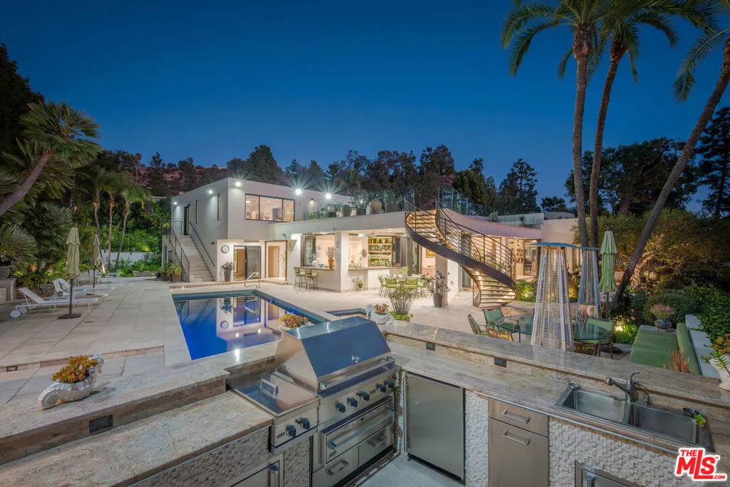 Extremely rare offering in prime Trousdale Estates with exceptional views. Two story home plus two story 1,300 Sq. Ft. Guesthouse. This nearly 7,000 square foot contemporary estate in the heart of Trousdale Estates embodies sophistication, scale, and timeless design. The two story main residence offers four bedrooms and six bathrooms, with a primary suite privately set on its own level for ultimate seclusion. Expansive living areas with soaring ceilings and walls of glass open seamlessly to beautifully landscaped grounds, capturing the essence of the indoor outdoor lifestyle. A rare two story guest house spanning nearly 1,300 square feet distinguishes this property from its peers and creates a true compound setting, ideal for hosting guests, extended family, or creative pursuits. A rooftop deck showcases panoramic city and canyon views, perfect for entertaining or relaxing. Together, the architectural pedigree and meticulous design make this estate a statement of refined Trousdale living.