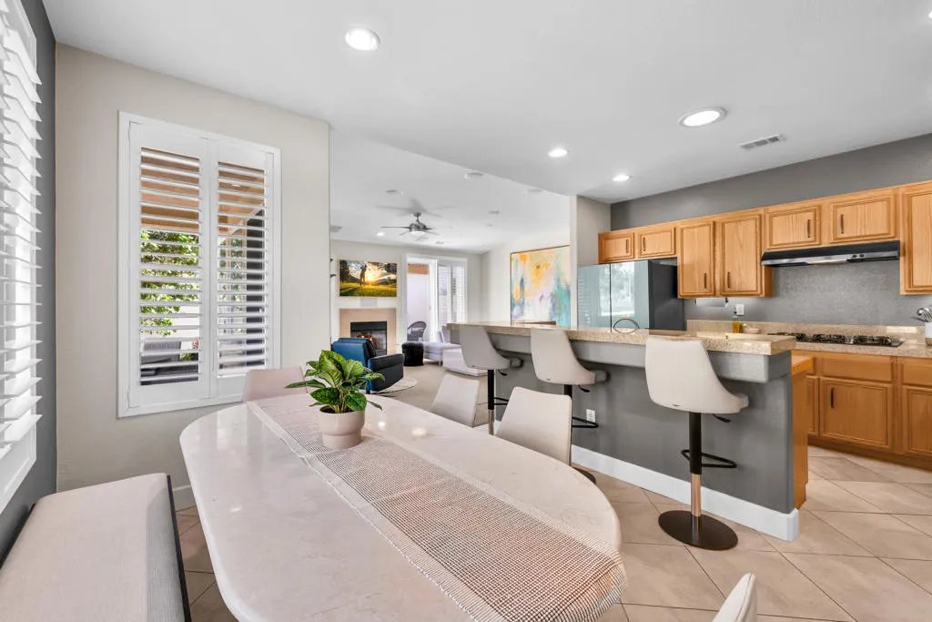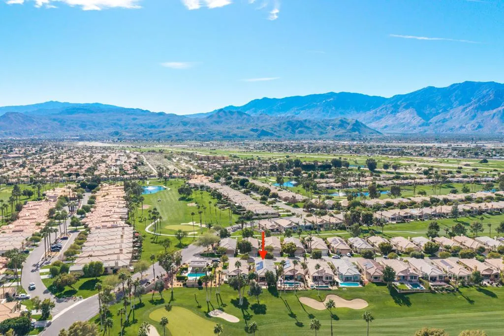Experience the resort inspired lifestyle of Desert Princess Country Club. This home offers peace of mind with over $100,000 of improvements including OWNED solar and battery backup power wall with outlet for EV charger, new plantation shutters, new carpeting, and an expanded outdoor living experience that includes an extended back patio plus a side patio, all complete with a gas plumbed firepit and Grapefruit tree. The kitchen has been refreshed with a new dishwasher and refrigerator, while enhanced surround sound and a new Frame TV elevate everyday living and entertaining.This beautifully maintained 3-bedroom, 2.5 bath golf course home overlooks the 8th hole of the Cielo Course. The 2nd bedroom ‘visitor’s suite’ has an en-suite bathroom, and a bonus room providing flexible space perfect for an office, fitness room, playroom, or bunkbeds. The 3rd bedroom is currently used as an office with a Murphy Bed. This home is conveniently located just one door from the closest pool and spa, and is offered furnished per inventory, list provided upon request.Residents and guests are drawn to the vibrant resort atmosphere and many amenities, including a newly renovated gym and spa, multiple sparkling pools/spas, tennis and pickleball courts, EV chargers, and an on-site restaurant. Golf enthusiasts enjoy discounted access to the 27-hole championship course with no tee time lotteries and no initiation fees, consistently recognized by Golf Digest as among the best in the valley.The HOA delivers outstanding value with two cable boxes including basic cable plus HBO and Showtime, high speed internet, grounds maintenance, exterior pest control upon request, outside irrigation and more. Additional perks include dining and pro shop discounts, along with the peace of mind of a gated community with 24-hour guard gated access and security. The land lease has been extended through 2069, $1,368/year. With HOA approved short term rentals, this updated villa is not only an inviting desert retreat but also a smart investment in one of the area’s most desirable communities, all just minutes from everything Palm Springs has to offer. Inquire with Cathedral City regarding short term rental permits.