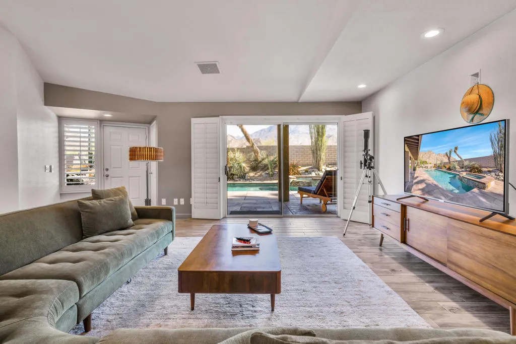 Welcome to this luxurious retreat surrounded by the Santa Rosa Mountains. Peacefully situated at the very top of The Upper Cove. Walk across the street to Bear Creek Trailhead. This home is one of the most unique vacation destinations in the desert. Privacy and Comfort. You and your guests can Relax or lap swim in heated saltwater pool. Enjoy the spa under the massive star studded evening sky. This beautiful home has an open floor plan with all 3 bedrooms with baths nicely situated for privacy. Fully equipped kitchen and dining areas for great entertaining. The property also offers RV parking w/hook up. Maximum Privacy. La Quinta has become a vacation destination for all who love hiking, golf, tennis, pickleball, dining, shopping and great weather. Desirable location is close to Old Town La Quinta and also the World Renown La Quinta Resort and Spa. Available Feb 3 to March 28 This home is available for Monthly Rental. Make this your destination in the desert. Not available July and August, 2025
