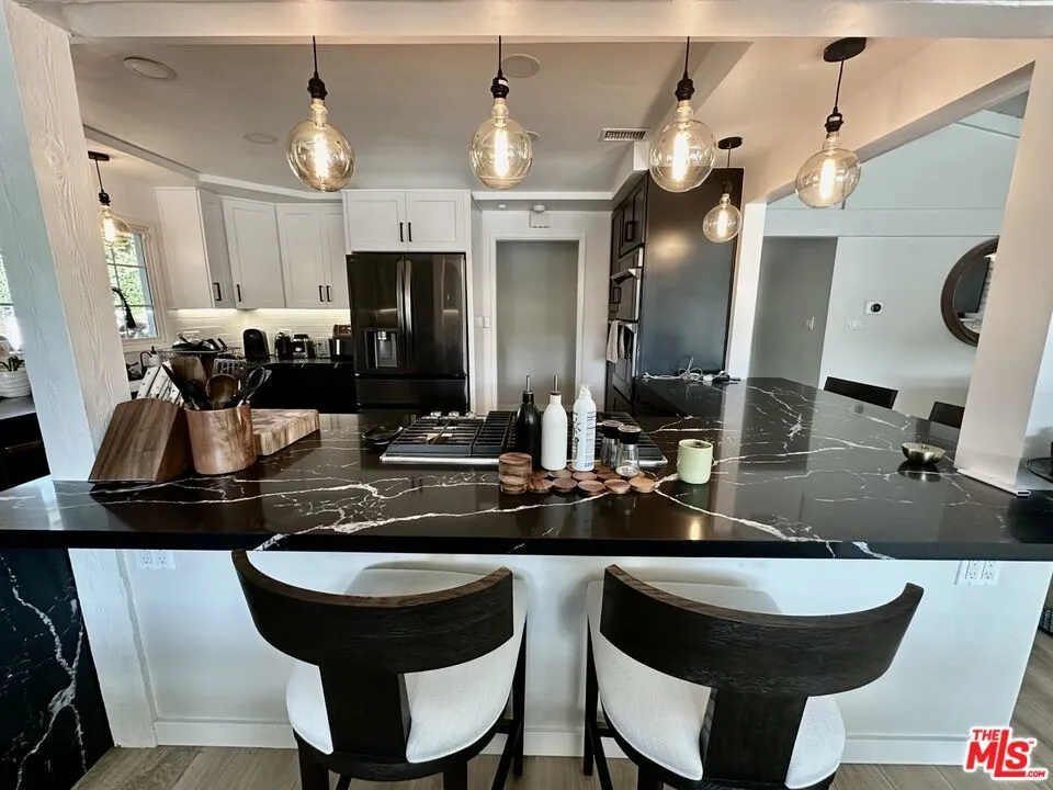 Fully renovated mid-century modern gem in the heart of Woodland Hills! Welcome to 22428 Victory Blvd, a private 5 bedroom 3.5 bath gated compound that seamlessly blends timeless design with modern luxury. Inside, the open layout greets you with beautiful hardwood floors, loads of natural light, a centerpiece fireplace, and a chef’s kitchen outfitted with sleek countertops, stainless steel appliances, and a huge breakfast bar. The spacious primary suite feels like a retreat, boasting a spa-like ensuite and ample closet space. Step outside, and you will discover a private backyard oasis designed for both relaxation and recreation with saltwater pool, cold plunge, sauna, home gym, and a golf practice net. But it doesn’t stop there, this estate is a dream for sports enthusiasts, featuring a dedicated sport court with basketball and pickleball courts with night time lighting, perfect for friendly games or staying active. Nestled near premier shopping, dining, and top-rated schools, this home offers a lifestyle of elegance, comfort, and fun.