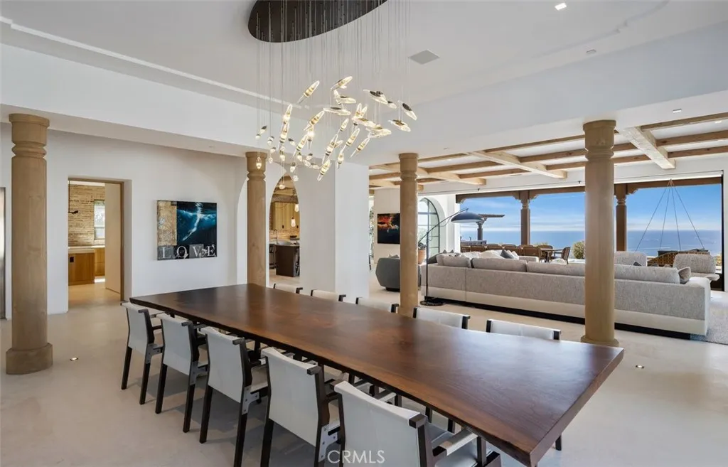 Nestled within the exclusive custom homesite gates of Crystal Cove in Newport Coast, this newly completed estate offers unparalleled luxury and sophistication. Situated on a front row, unobstructed parcel, the property boasts sweeping white water coastline views from Newport Harbor to the Palos Verdes Peninsula, with Catalina and year-round sunsets as a stunning backdrop. The estate features 7 bedroom suites and 11 bathrooms, encompassing 12,986 sq. ft. of meticulously crafted living space. Designed in a progressive Santa Barbara style, the interior showcases premium stone and exquisite woodwork finishes. The bright, expansive communal living areas are flooded with natural light, enhancing the home’s elegant ambiance. The finely appointed chef’s kitchen is equipped with premium appliances, perfect for culinary enthusiasts. The lower level offers a home theater, bar, lounge, two wine cellars, billiards room, spa, and a large laundry room, providing ample space for entertainment and relaxation. The exterior grounds are a visual masterpiece, featuring lush landscapes, water and fire features, sculptural art, and exquisite hardscapes. The infinity pool seamlessly blends into the unobstructed ocean view and cascades to a lower pool with a Baja shelf. Outdoor amenities include a covered pool cabana with a bathroom, a covered BBQ area, and an outdoor entertainment pavilion. The estate also includes an expansive subterranean garage. The guard-gated community of Crystal Cove has much to offer its residents and guests, including the 2.5 acre Canyon Club for swimming, tennis, work-outs, entertaining and meetings. There are also parks, greenbelts and access to hiking and biking trails. Conveniently located just outside of the community gates, the Crystal Cove Promenade includes many casual and upscale options for dining and shopping. Crystal Cove State Beach sits just across Pacific Coast Hwy. Home is fully furnished including cookware. Ready to move in.